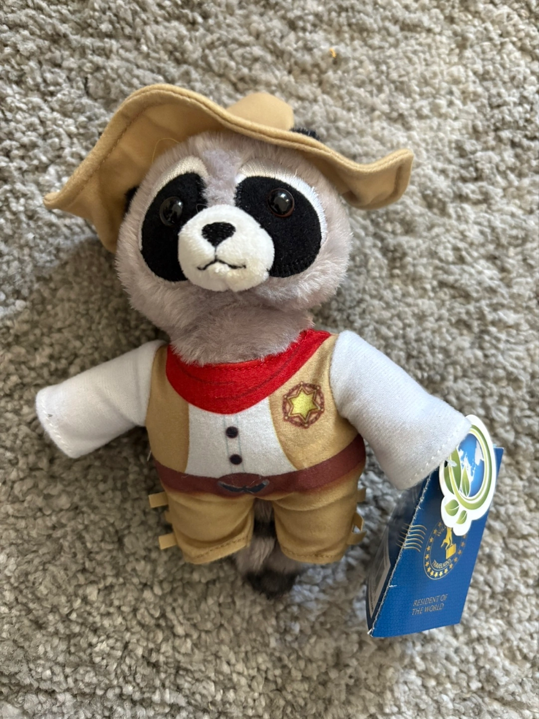 Adorable plush raccoon wearing a cowboy outfit. Comes with tags. Collectible. Part of the Wild Republic Travelkins collection, smoke free home.