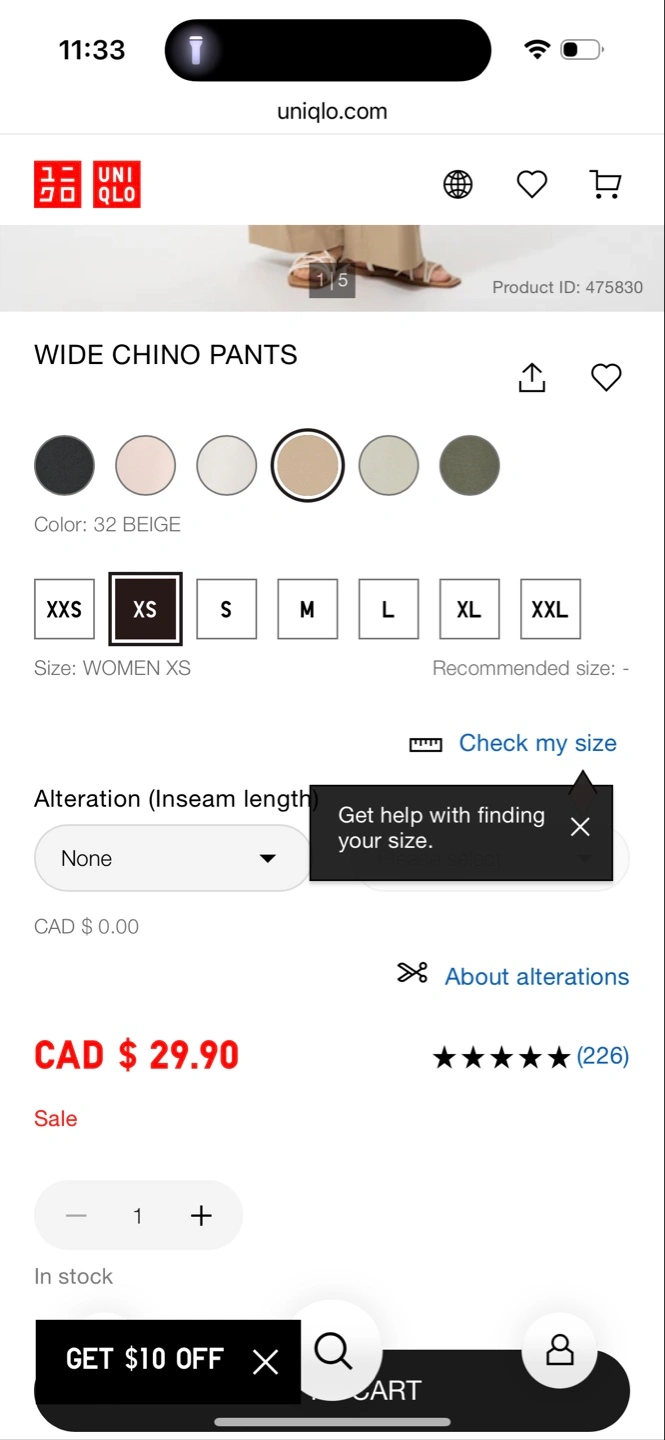 Uniqlo Women's Wide Chino Pants - Size XS - Beige