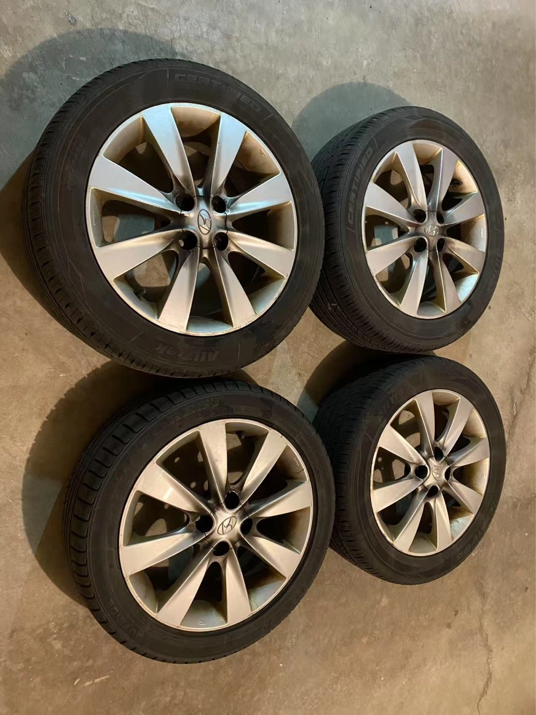 Previously purchased tires from Canadian tire for over $800 couple months ago. OEM aluminum wheels from Hyundai worth atleast $400. Suitable for Hyundai Elantra GT. Includes winter and all-season tires.