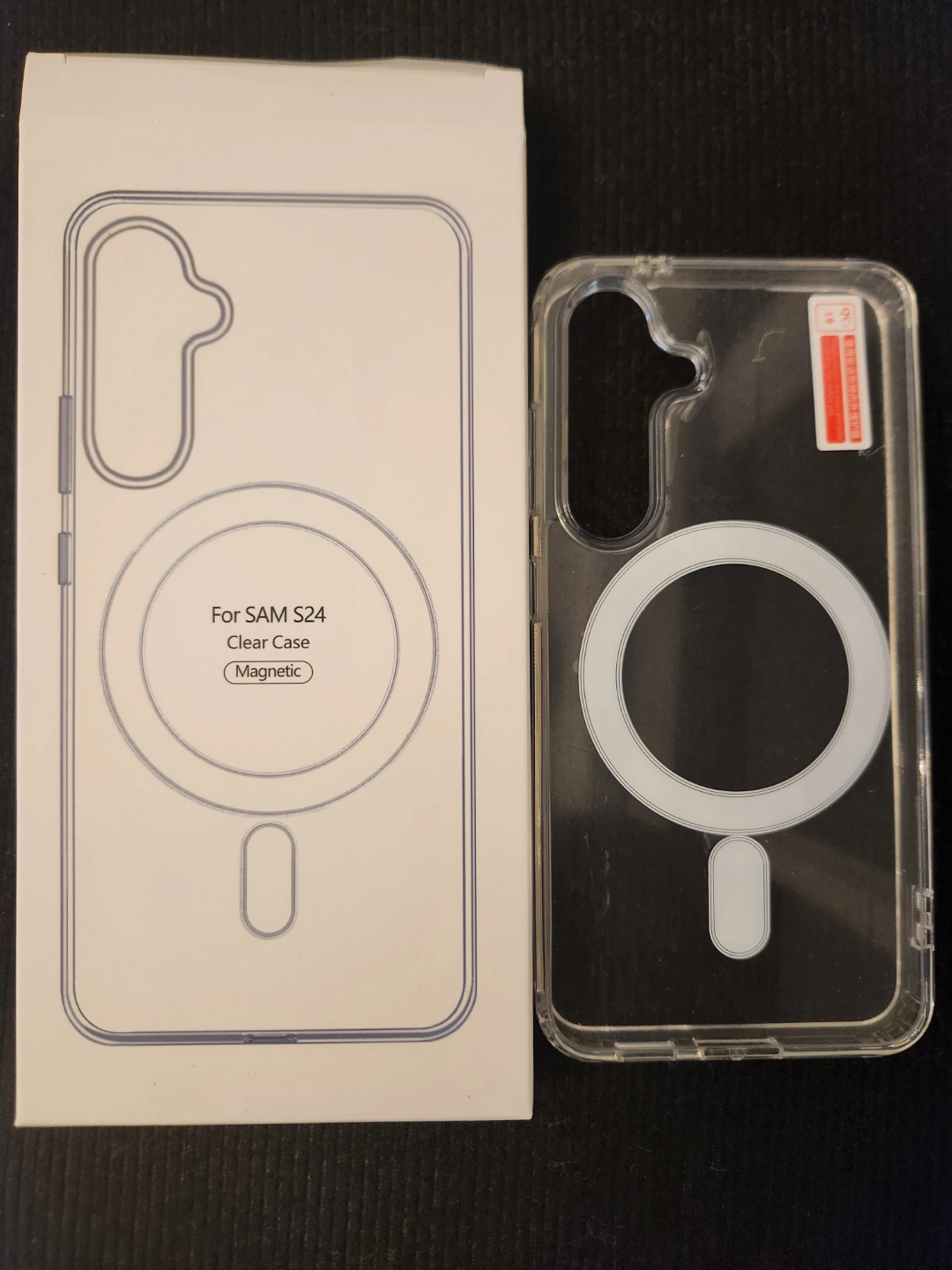 Brand new, clear phone case. Features a built-in magnetic ring for wireless charging. Compatible with Samsung S24. Comes in original packaging.