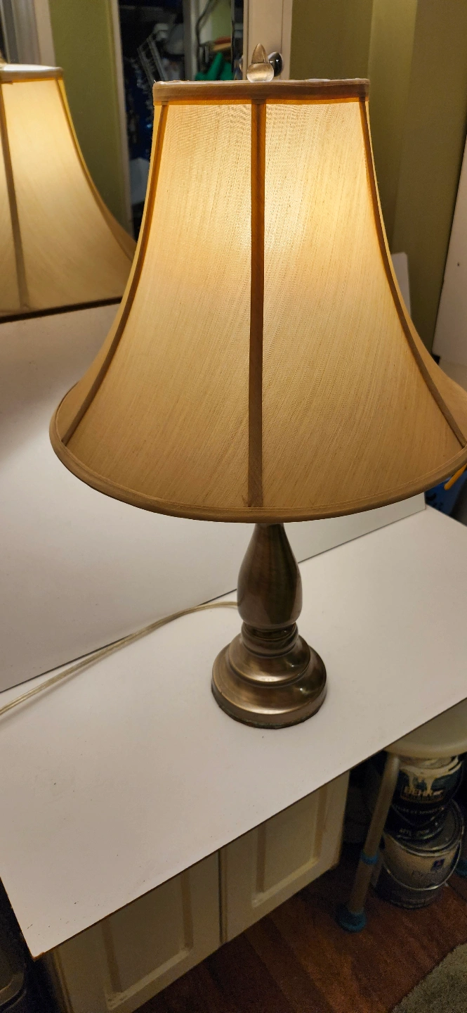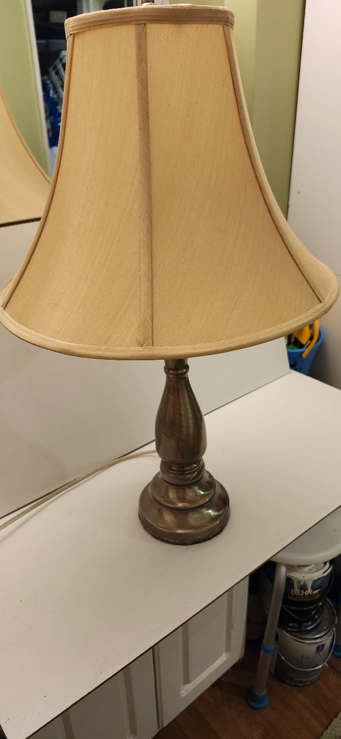 Excellent working condition including laed bulb 💡 Elegant table lamp, bronze coloured base, beige bell-shaped lampshade. Good used condition, minor wear. price only cash only pickup no delivery. Meet up on 801 O'Connor drive outside TD Canada Trust bank door please.