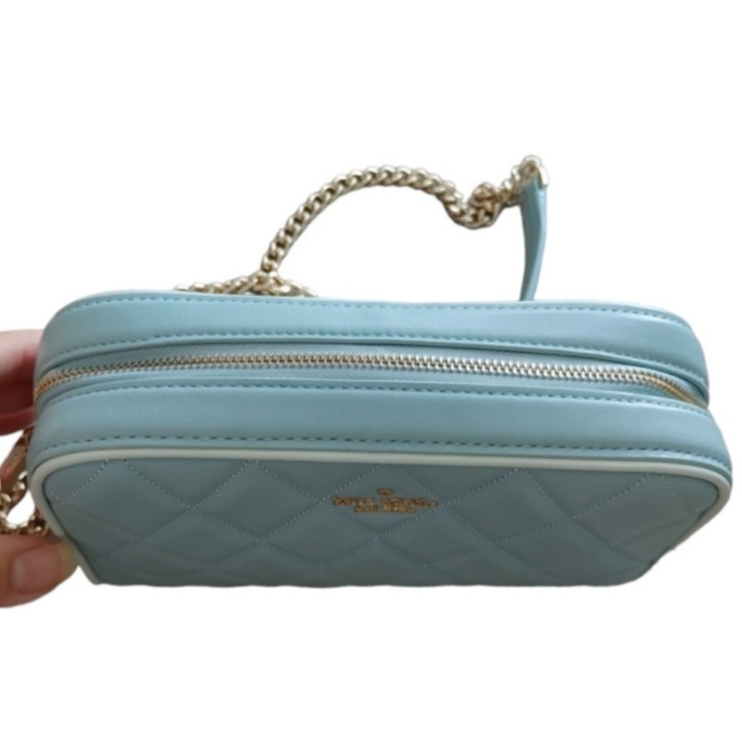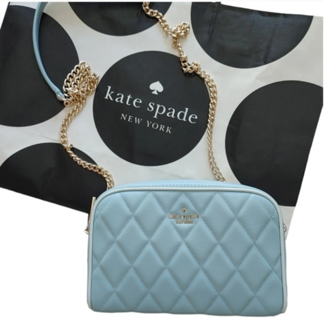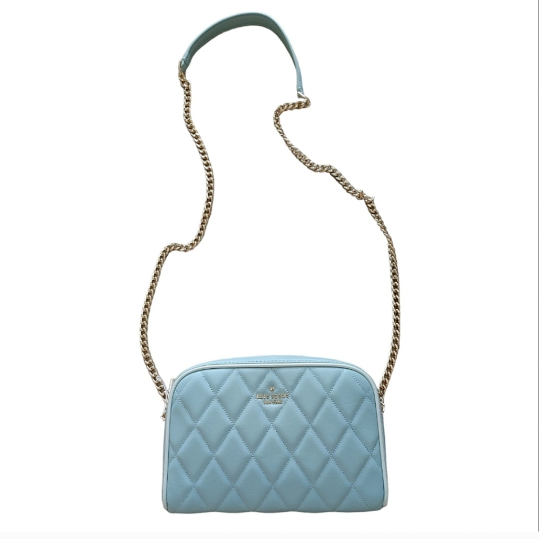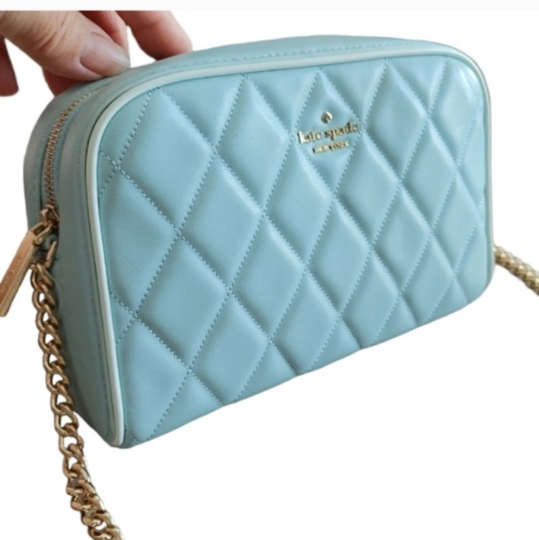 Kate Spade Teal Light Blue Two Tone Quilted Leather Crossbody Bag.