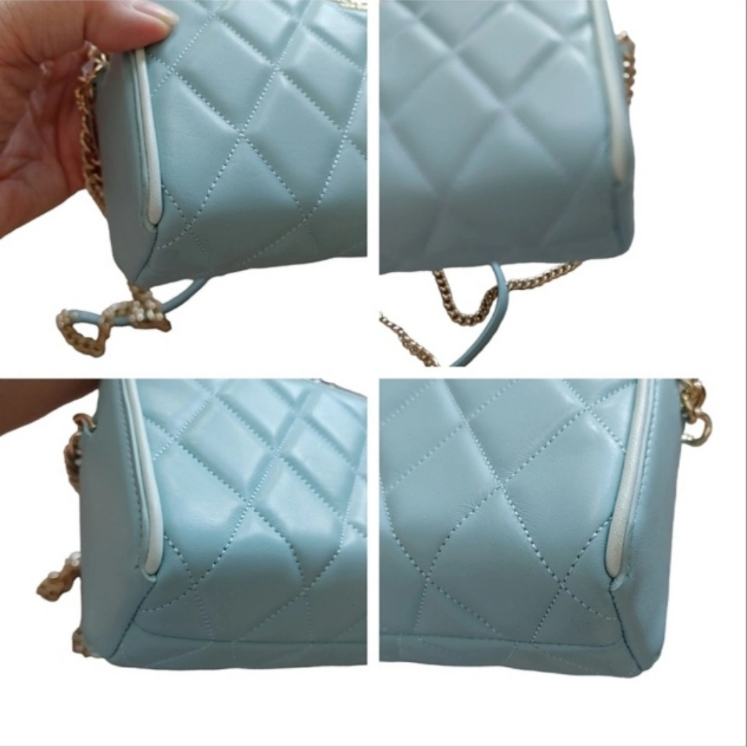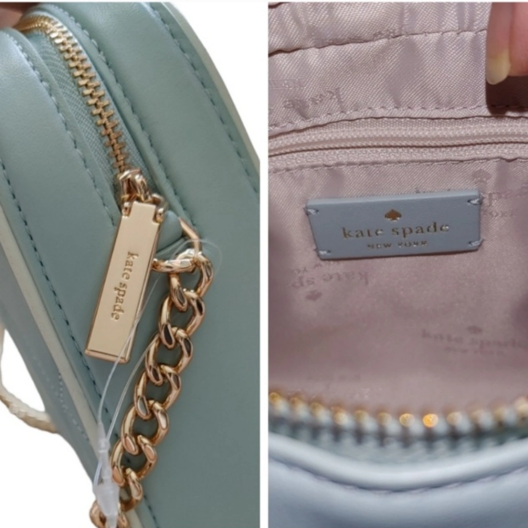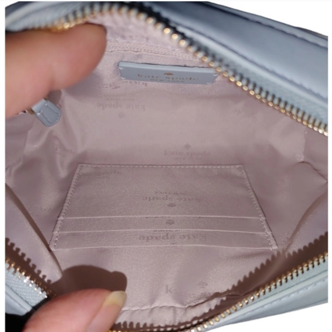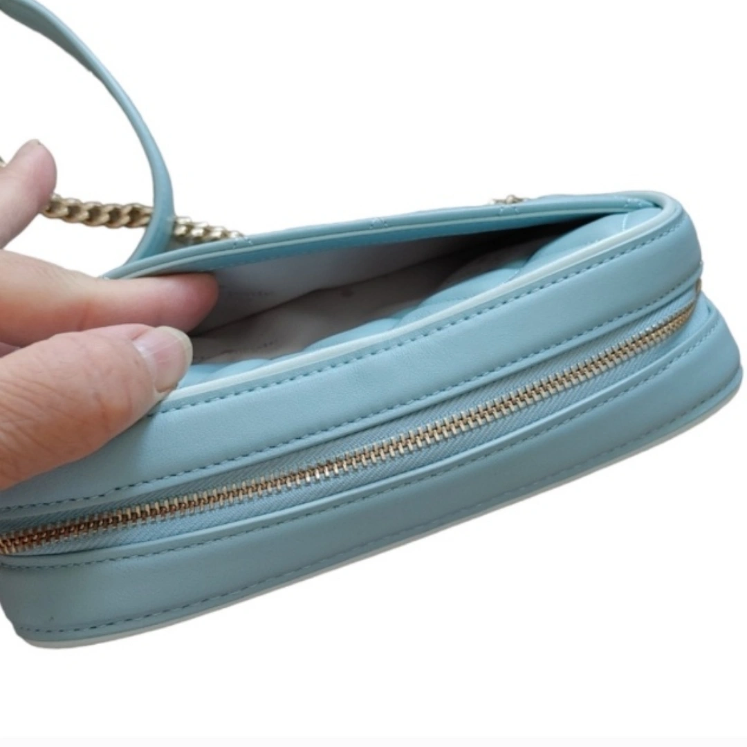 Kate Spade Teal Light Blue Two Tone Quilted Leather Crossbody Bag.