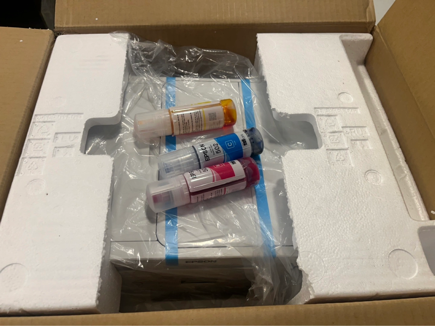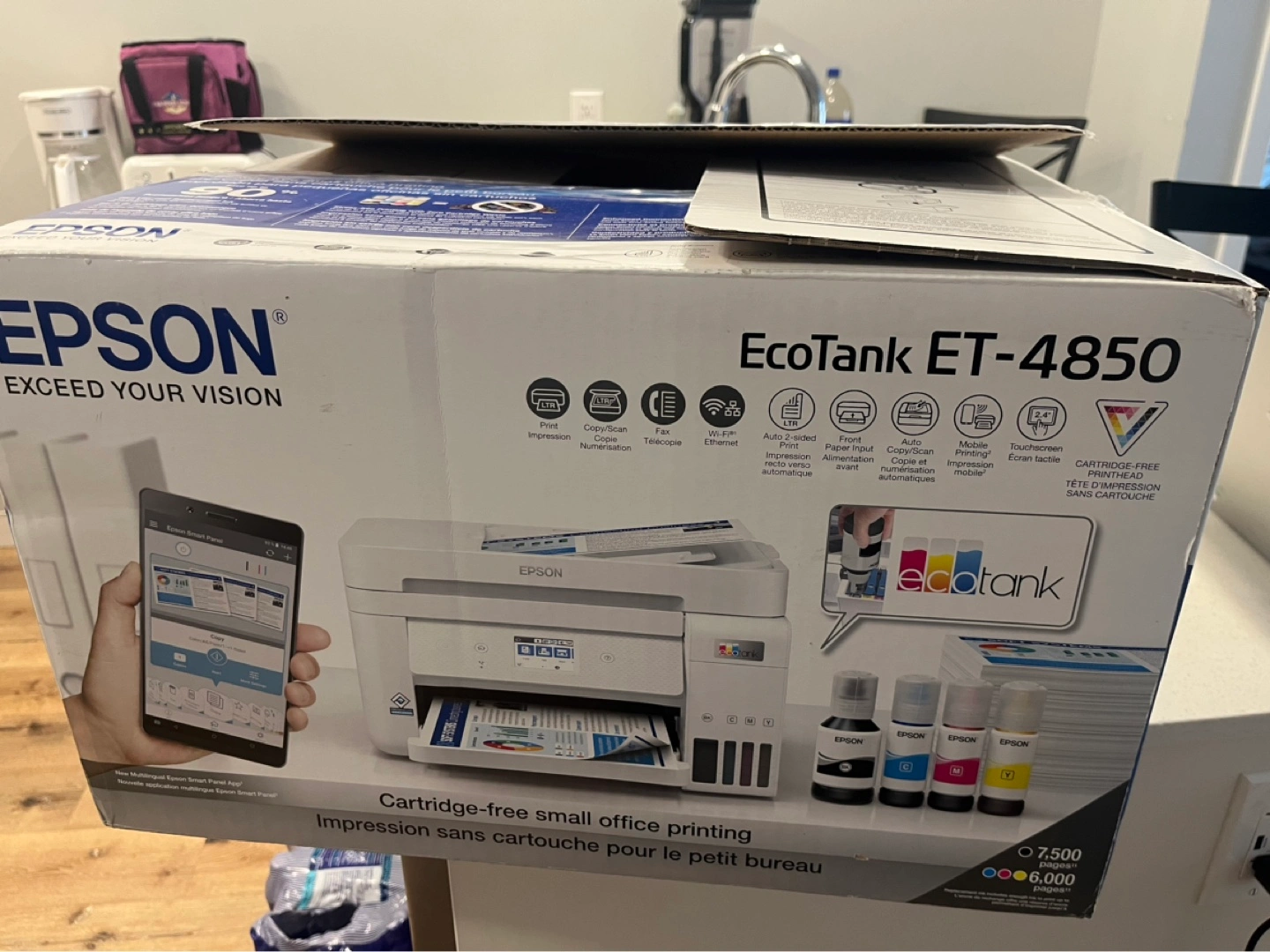 Brand new, in box. EcoTank ET-4850 model. Includes ink bottles. Wireless capabilities. Cartridge-free design. Small office printer.