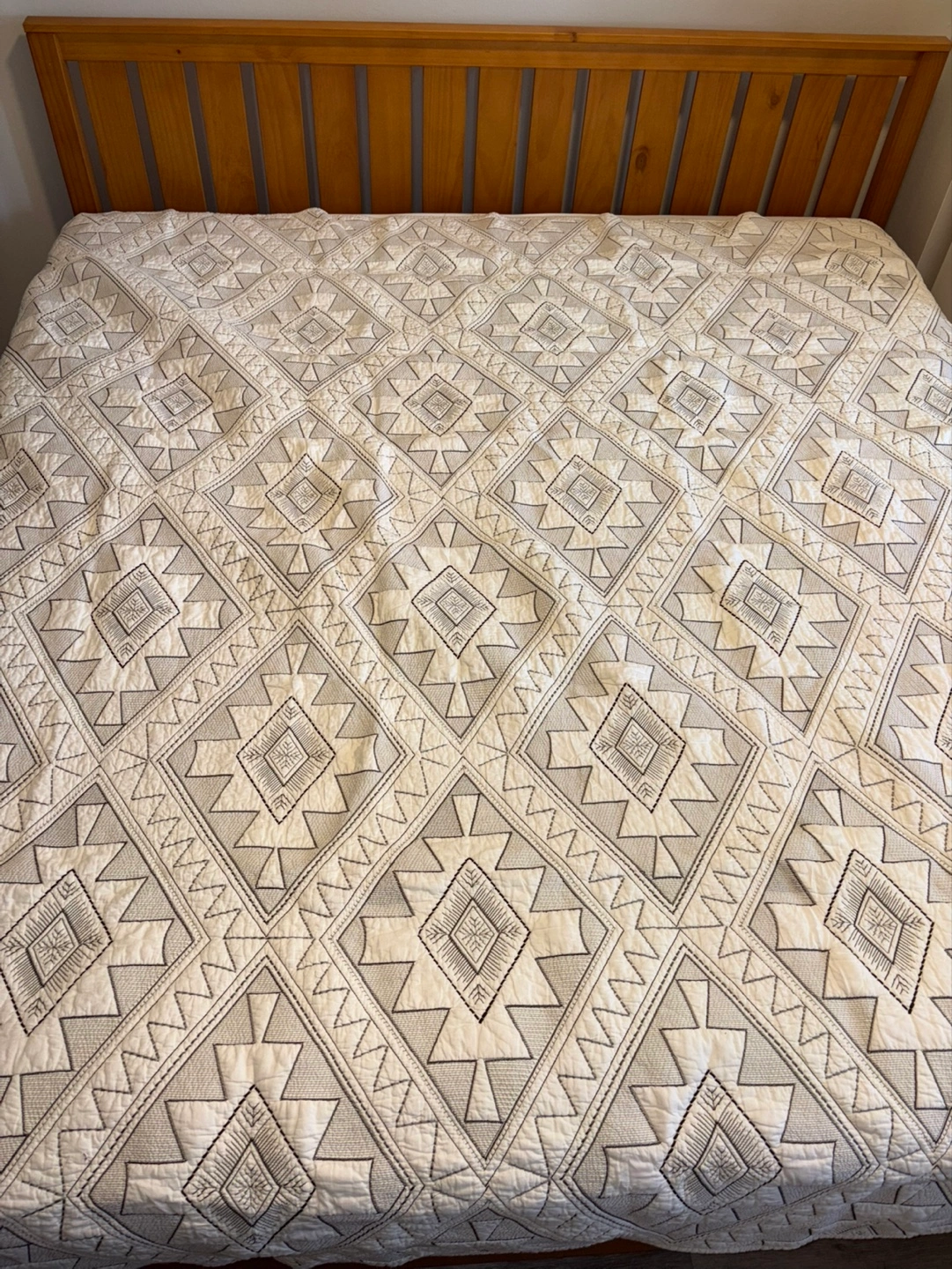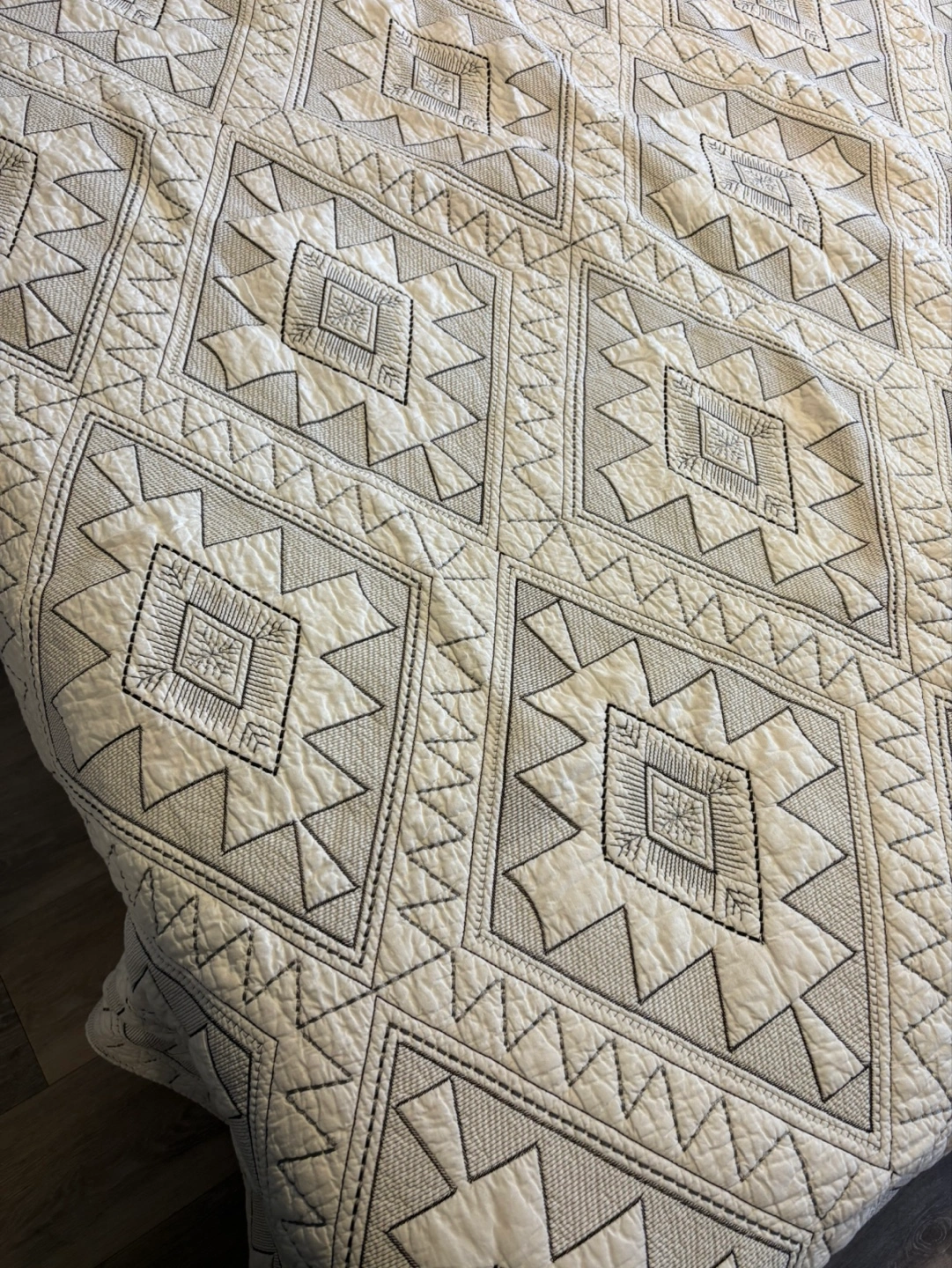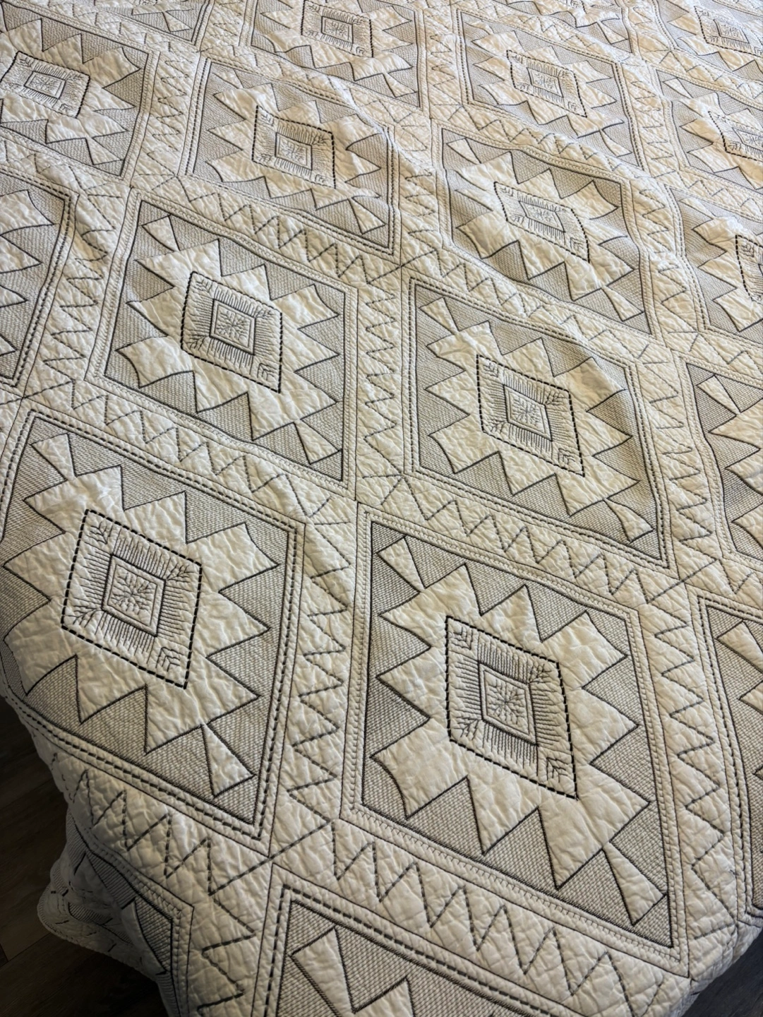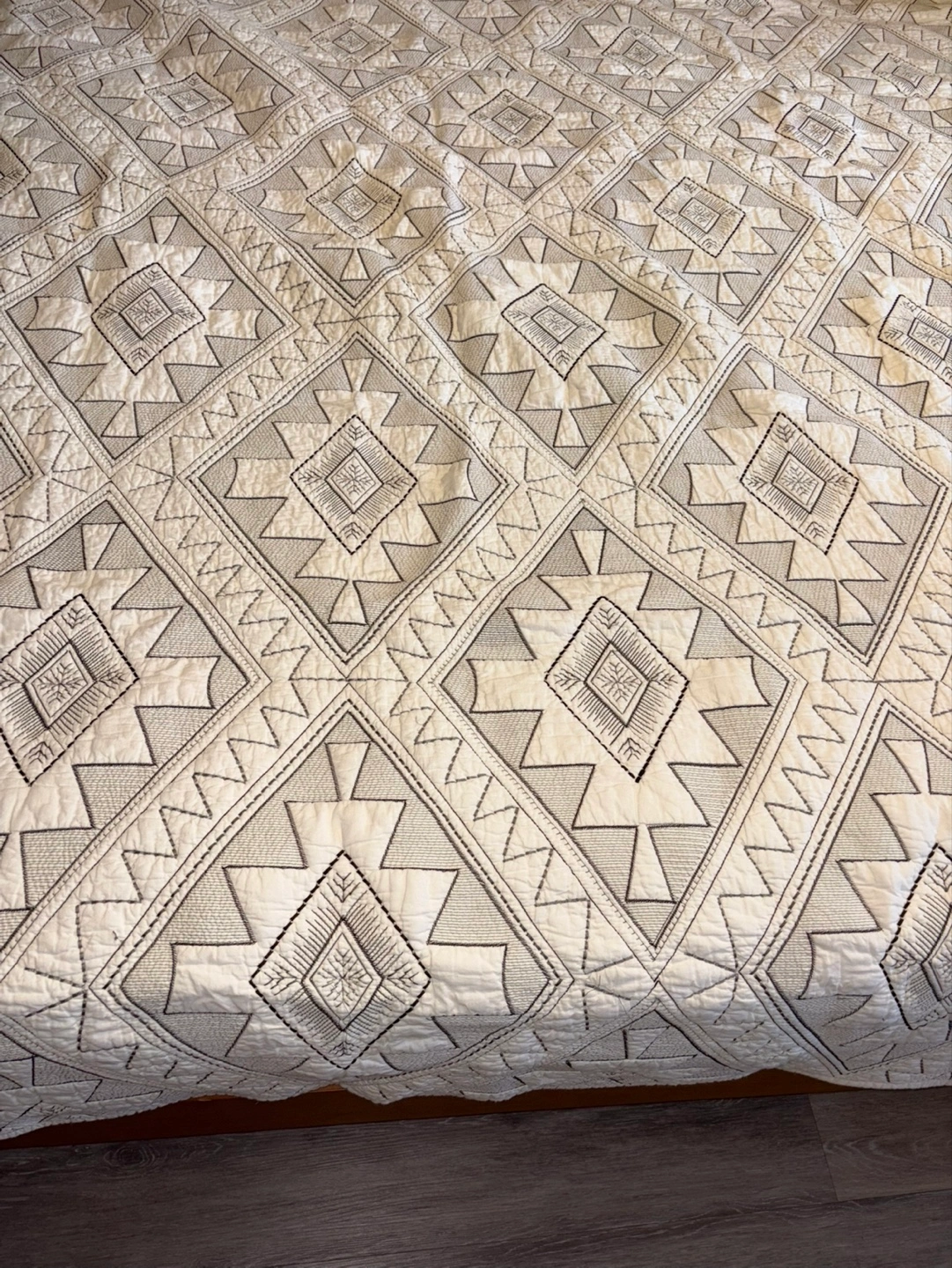 Quilt (king size) (cream color) (geometric embroidery)