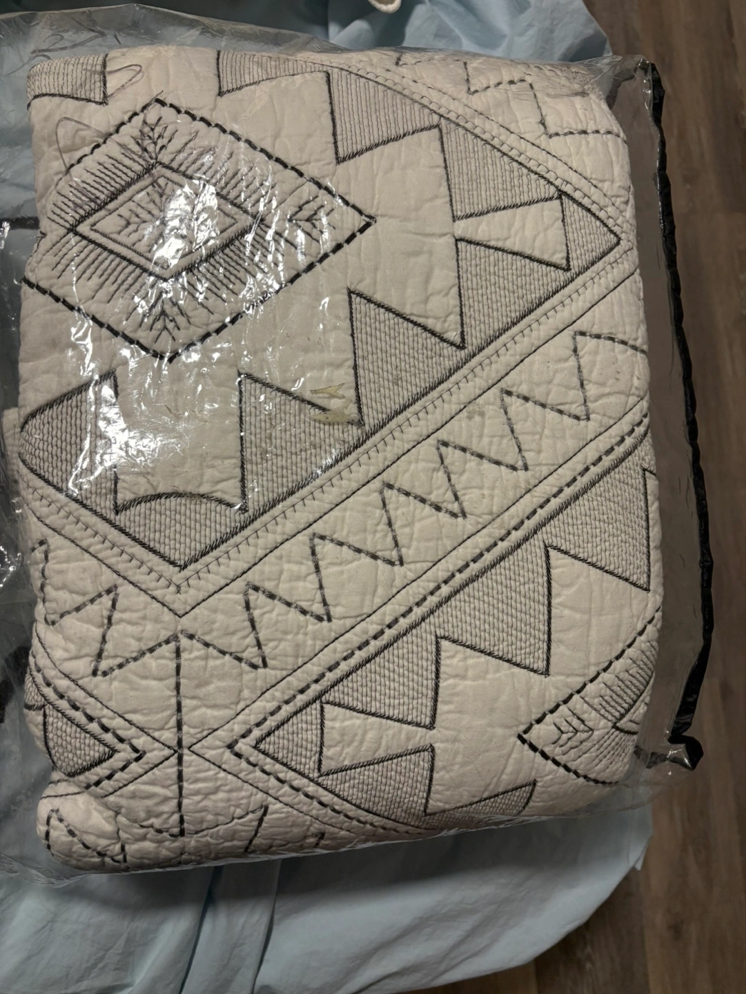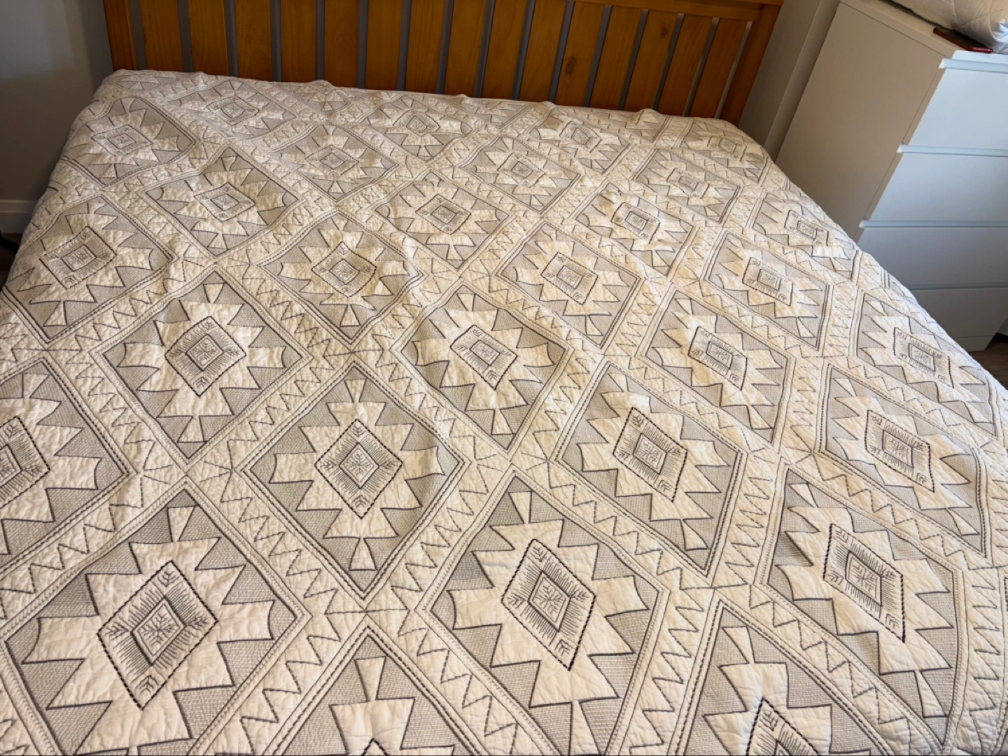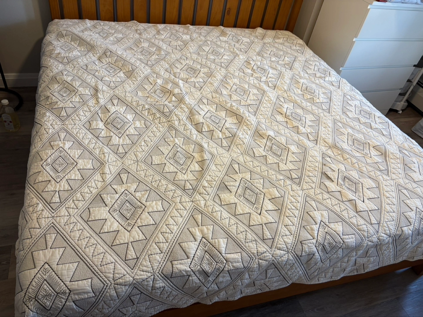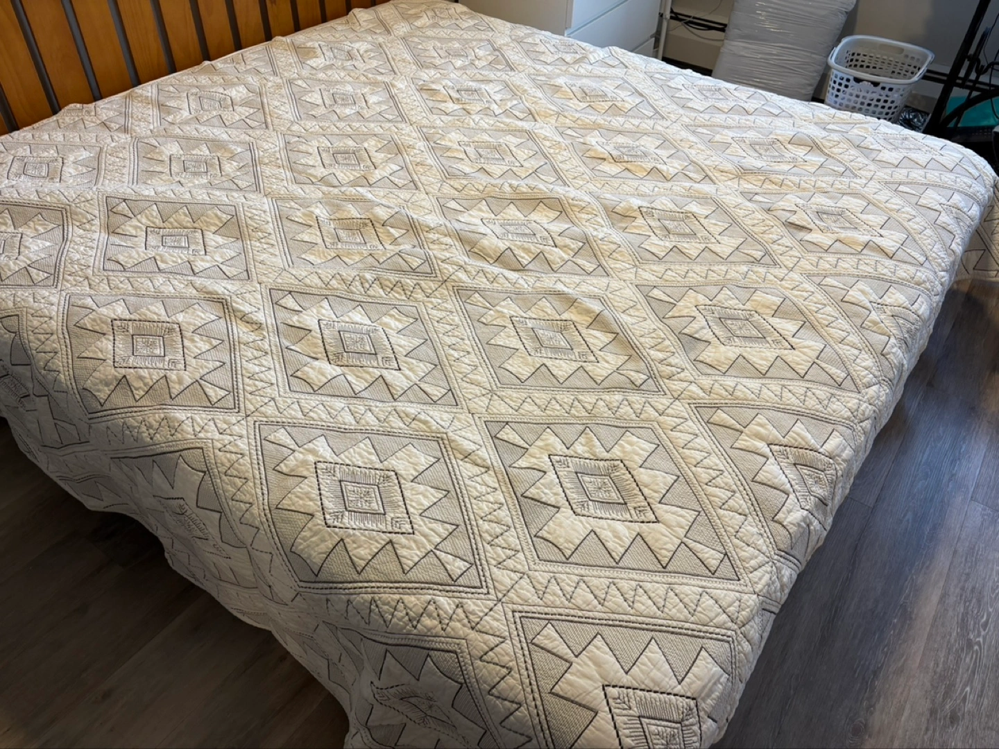 Quilt (king size) (cream color) (geometric embroidery)