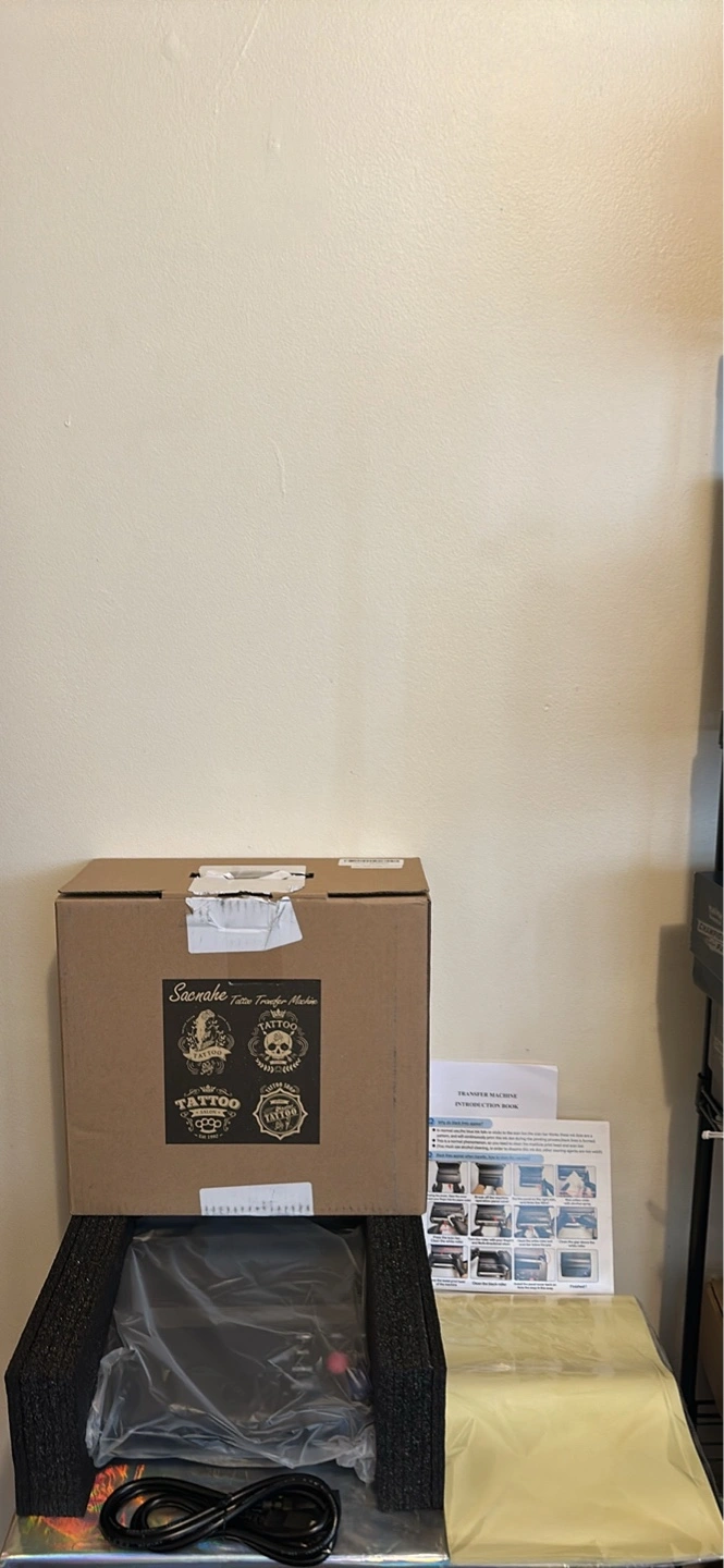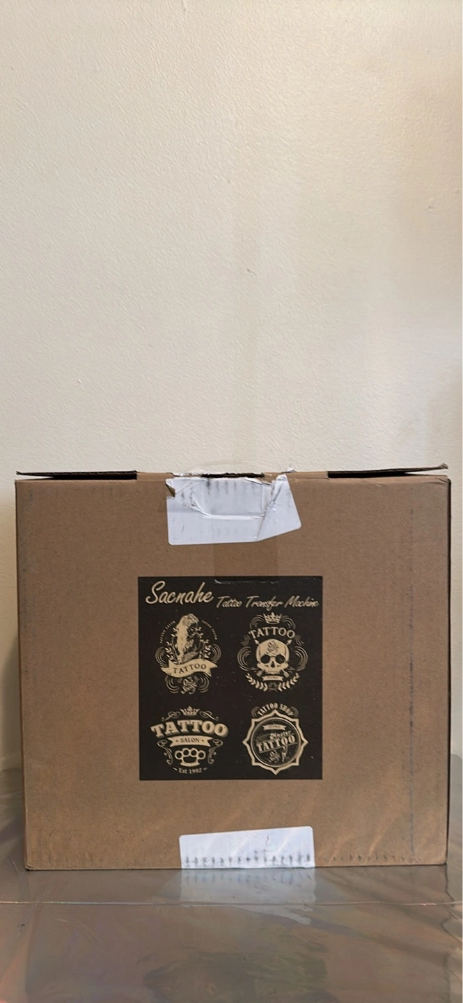 New Sacrahe tattoo transfer machine. Includes 20 stencil papers. Easy to use. Great for transferring tattoo stencils. Compact and portable design.