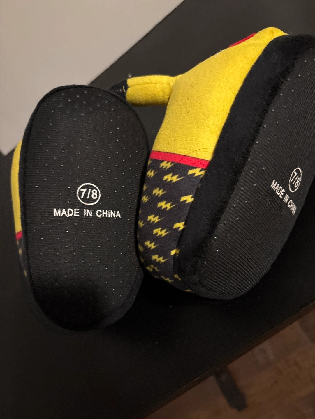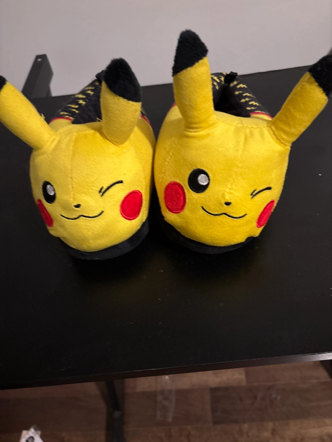 Adorable Pikachu slippers. Soft plush material. Size 7/8. Made in China. Perfect for cozy nights.