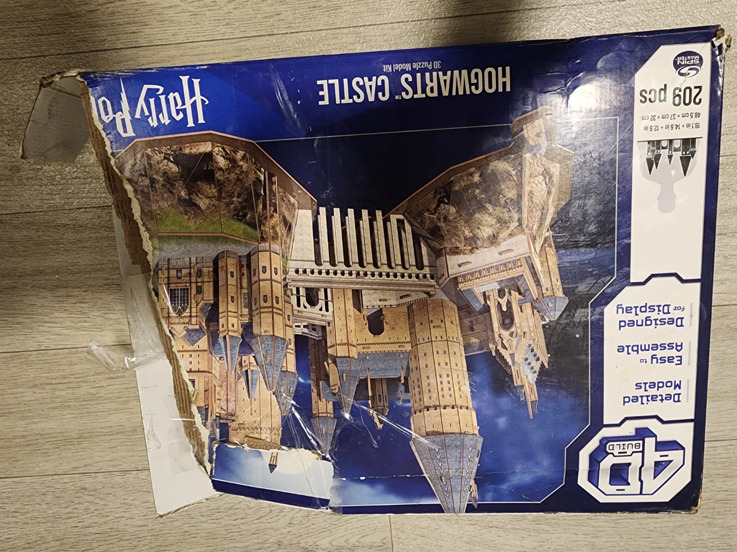 723D puzzle of Hogwarts Castle. 209 pieces. Box shows some wear.