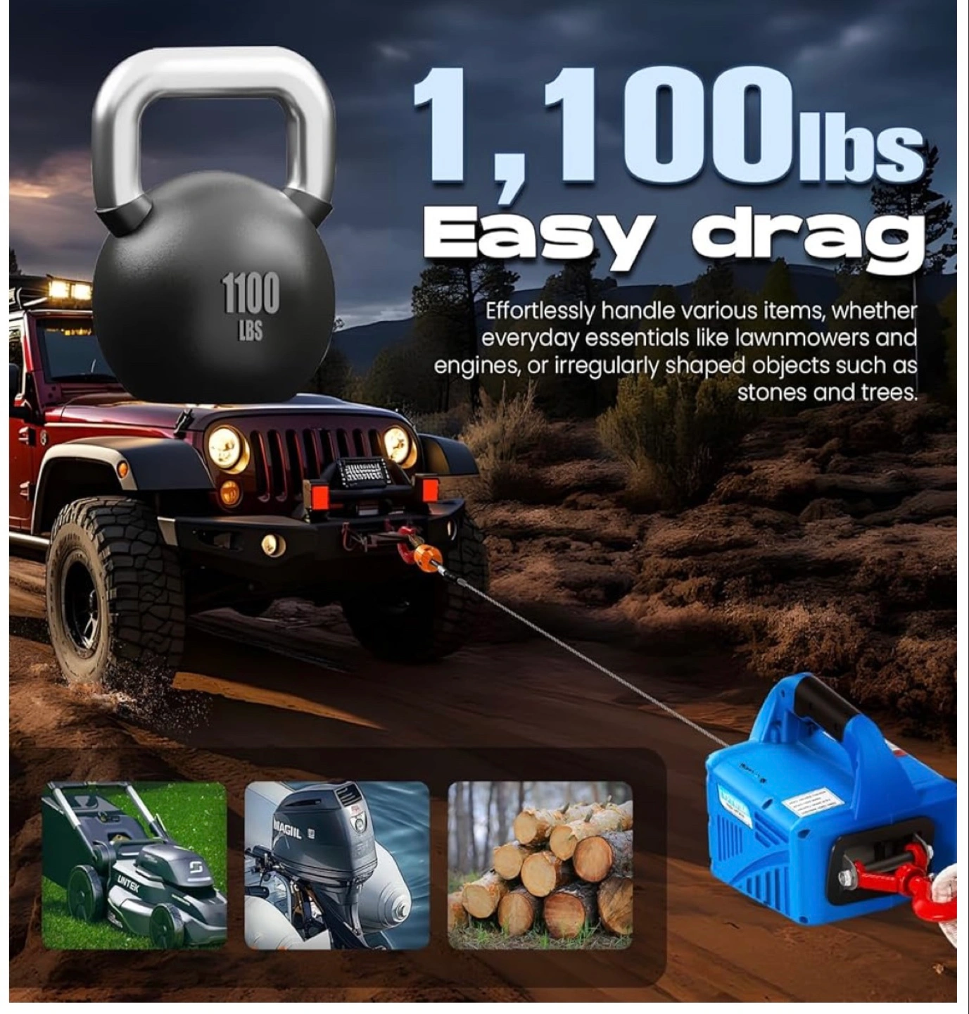 Electric hoist, 500kg capacity. Blue casing, red hook. Includes power cord. Easy to use. Great for various lifting tasks.