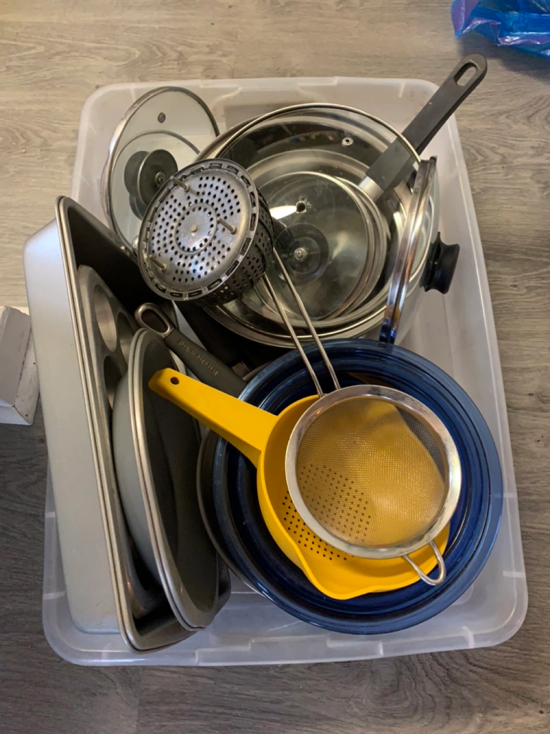 Have a bunch of kitchen stuff to give away, including 3 fry pans (2 are kitchenaid), 3 pots with lids, 3 mixing bowls, two strainers, cake pan, muffin tin, pie tin, vegetable steamer. You can take it all in under-bed size Tupperware with lid. Must take from Parkdale today or tomorrow. #movingsale