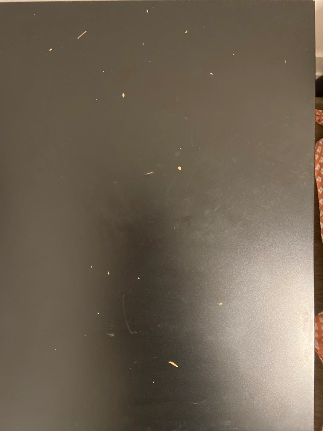 Small black side table. Square top. Simple design. Minor surface scratches can be easily covered with table cloth.