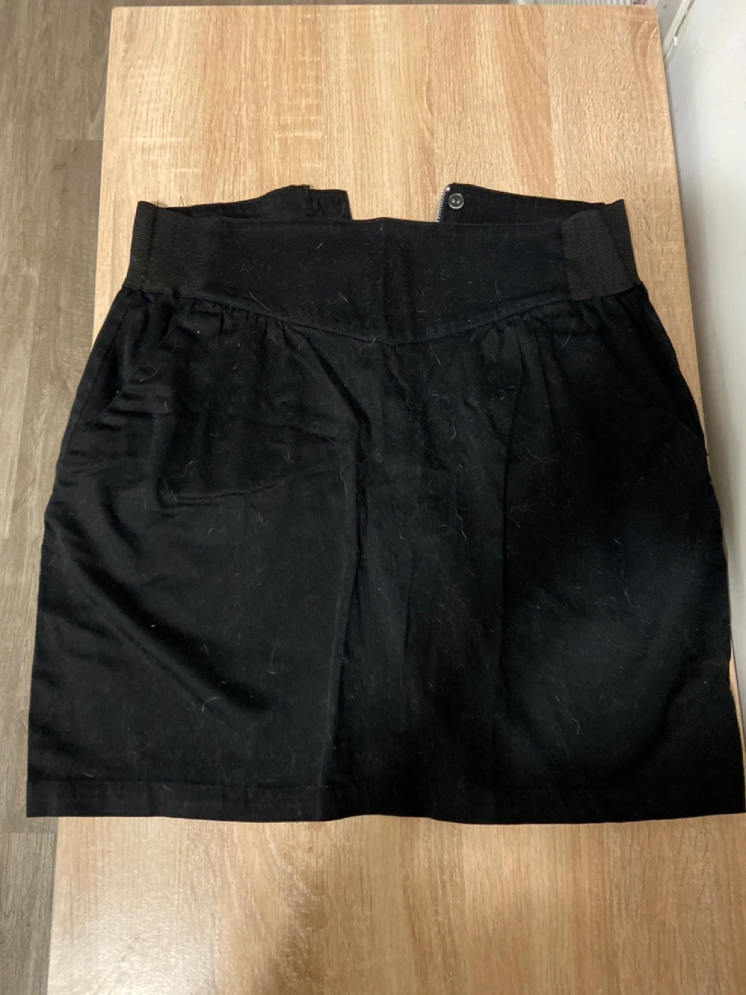 Women's black mini skirt. Size 10. Elastic waistband. Zip closure. Simple design. Good for office wear / semi formal look.