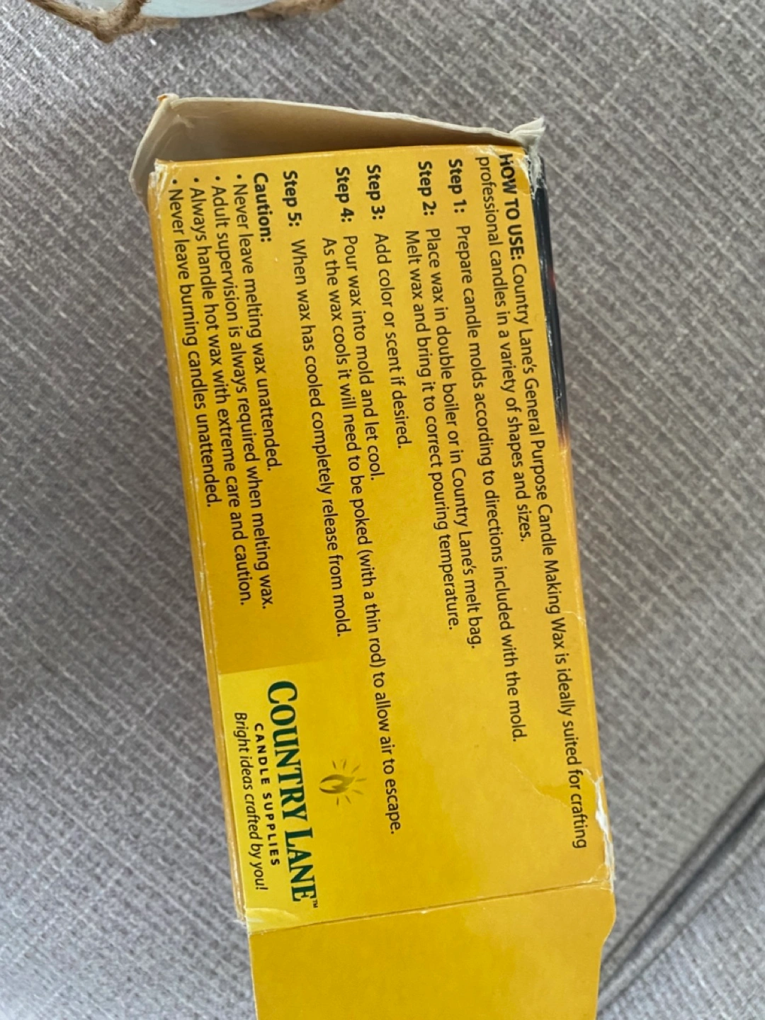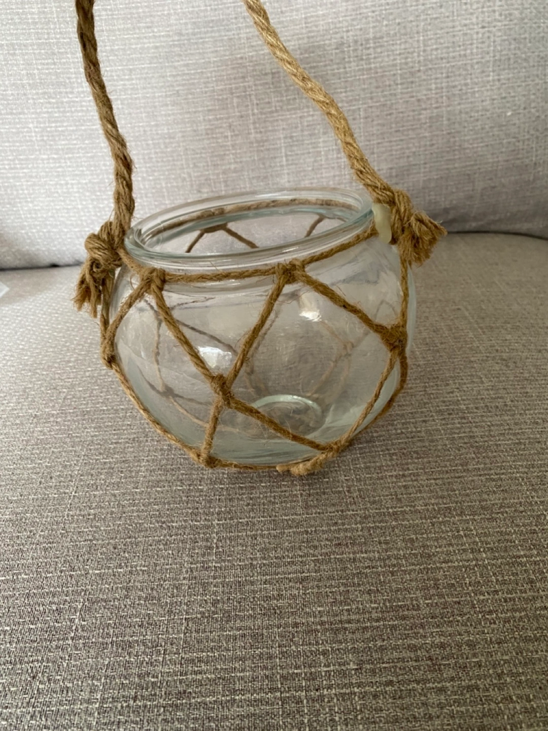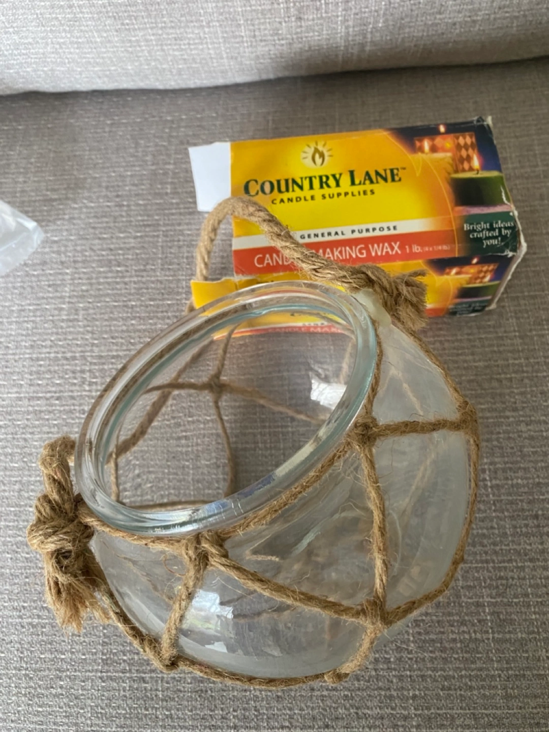 1 lb box of Country Lane General Purpose candle making wax. Four wax blocks included, box opened, but never used. Glass hanging jar with jute rope accents. Perfect for a candle making project- I purchased for my daughter but she lost interest. Was stored in the garage. Please refer to pictures for details.