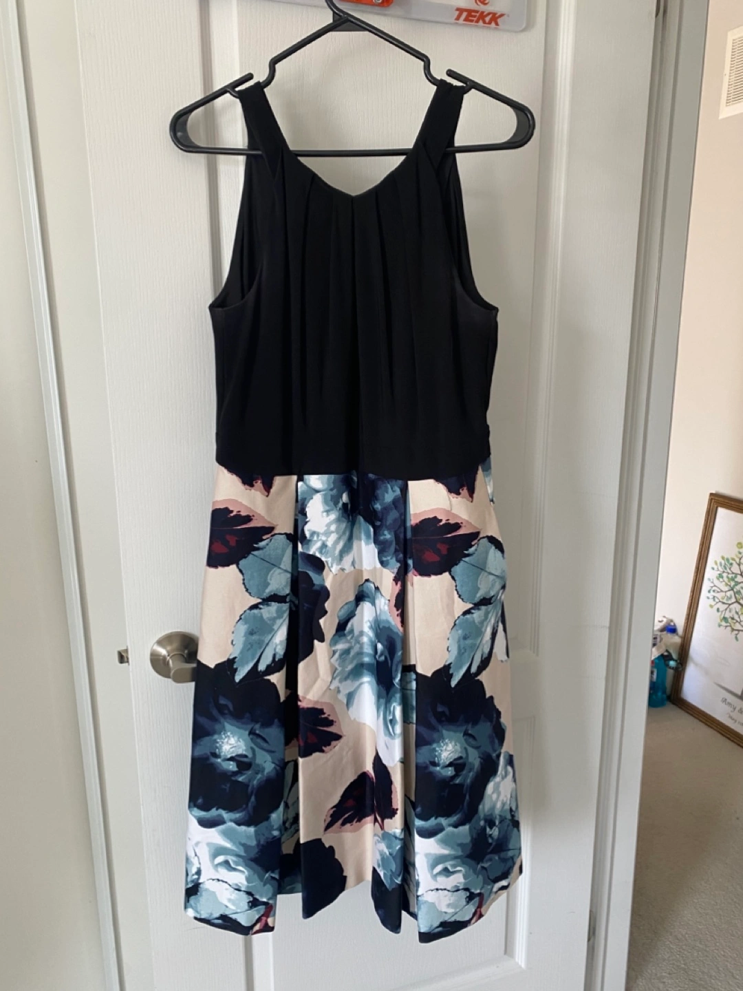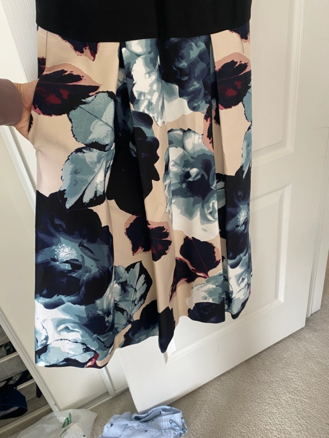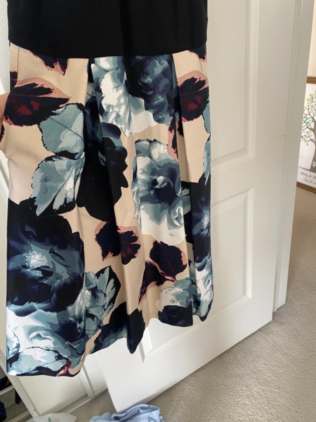 Beautiful floral midi dress. Black bodice, pleated floral skirt. Size medium. Excellent condition only worn once.