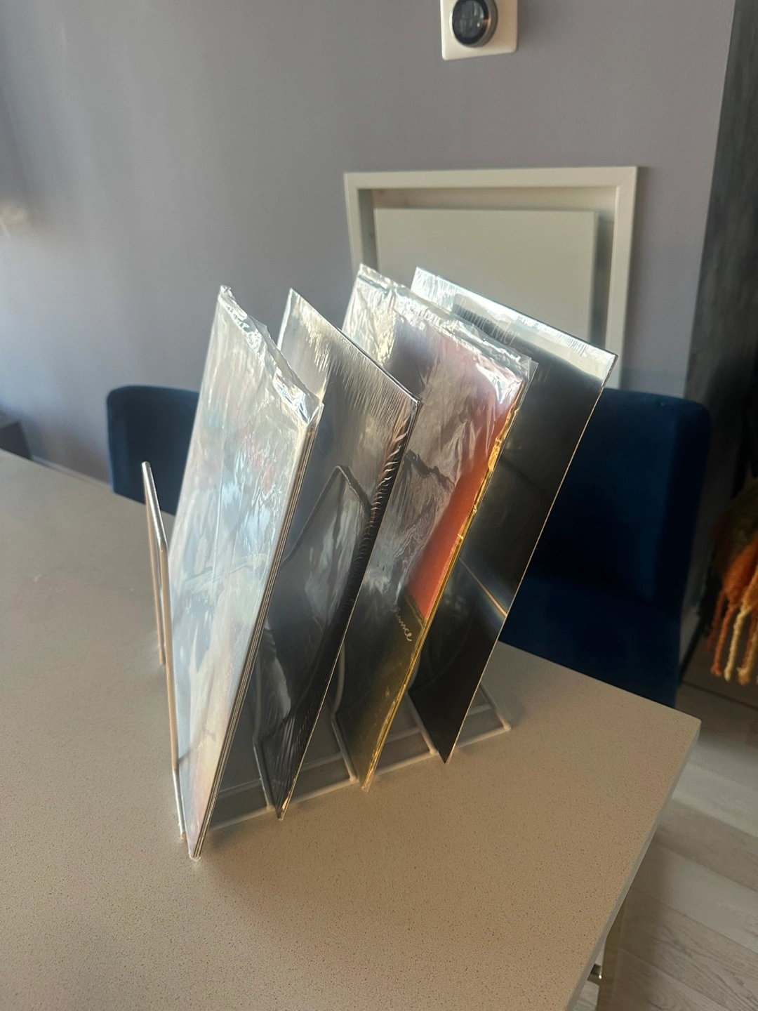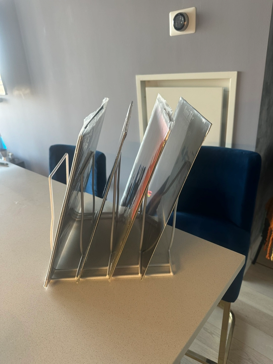 Modern white metal stand, records are not included!! Could be used for magazines or anything else flat π