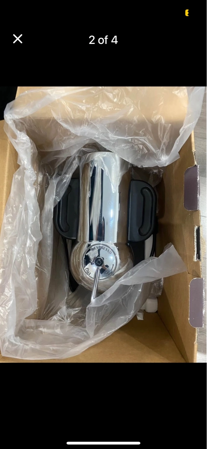 New Nespresso Vertuo coffee machine by Breville. Chrome and black accents. Includes original box. Makes delicious coffee.