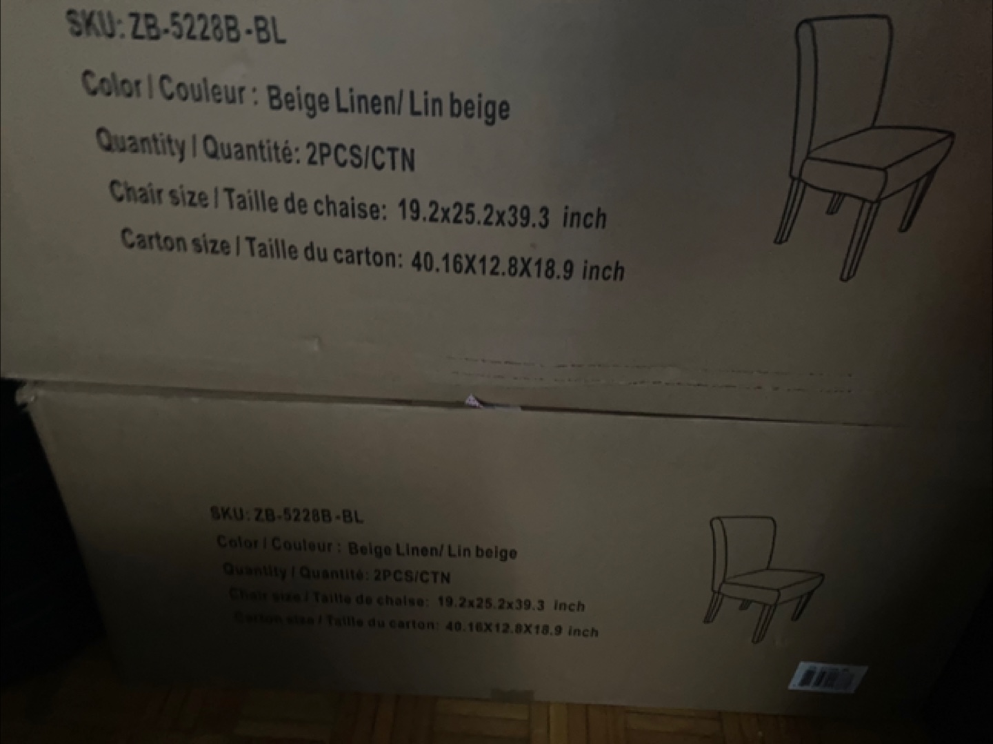 Brand new chairs never used just opened the box to see what they looked like, each box comes with a set of 2. I have 4 chairs total, asking $220 for the set