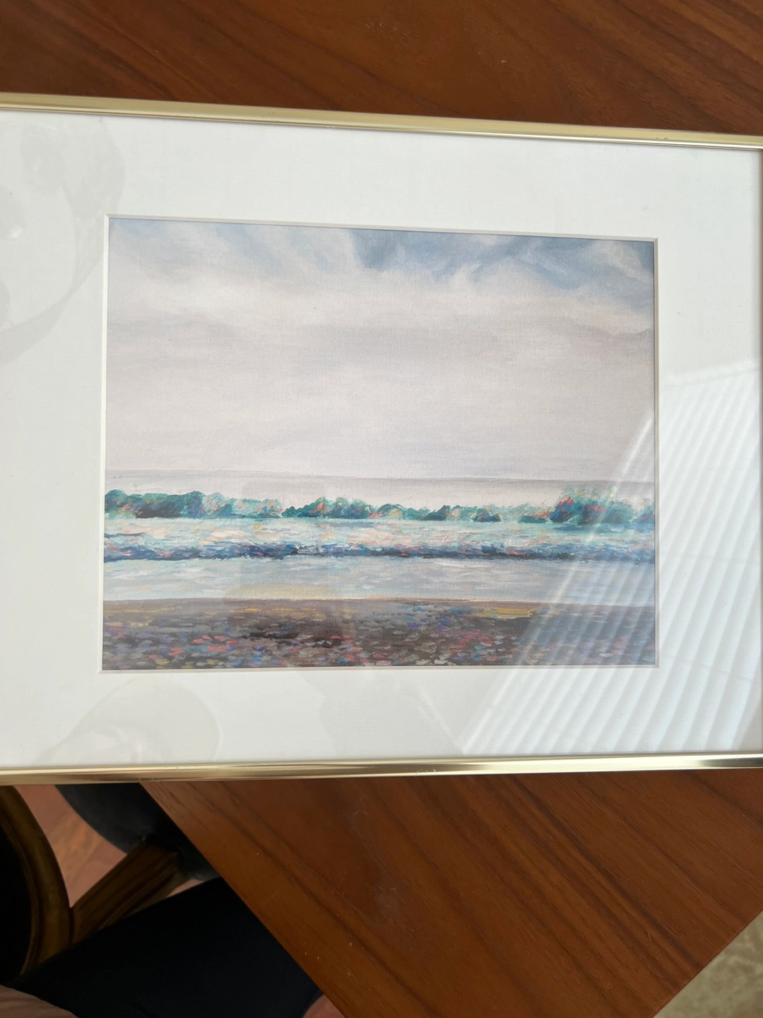 Beautiful framed seascape painting. Gold frame. Ocean scene with waves and beach. Ready to hang.
