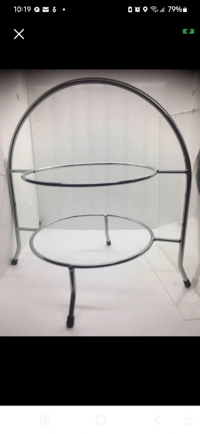 I am giving away this Chrome-plated metal stand. Two circular tiers. to someone who well needed it . It is Great for parties or everyday use. Sturdy construction. Easy to clean.💚