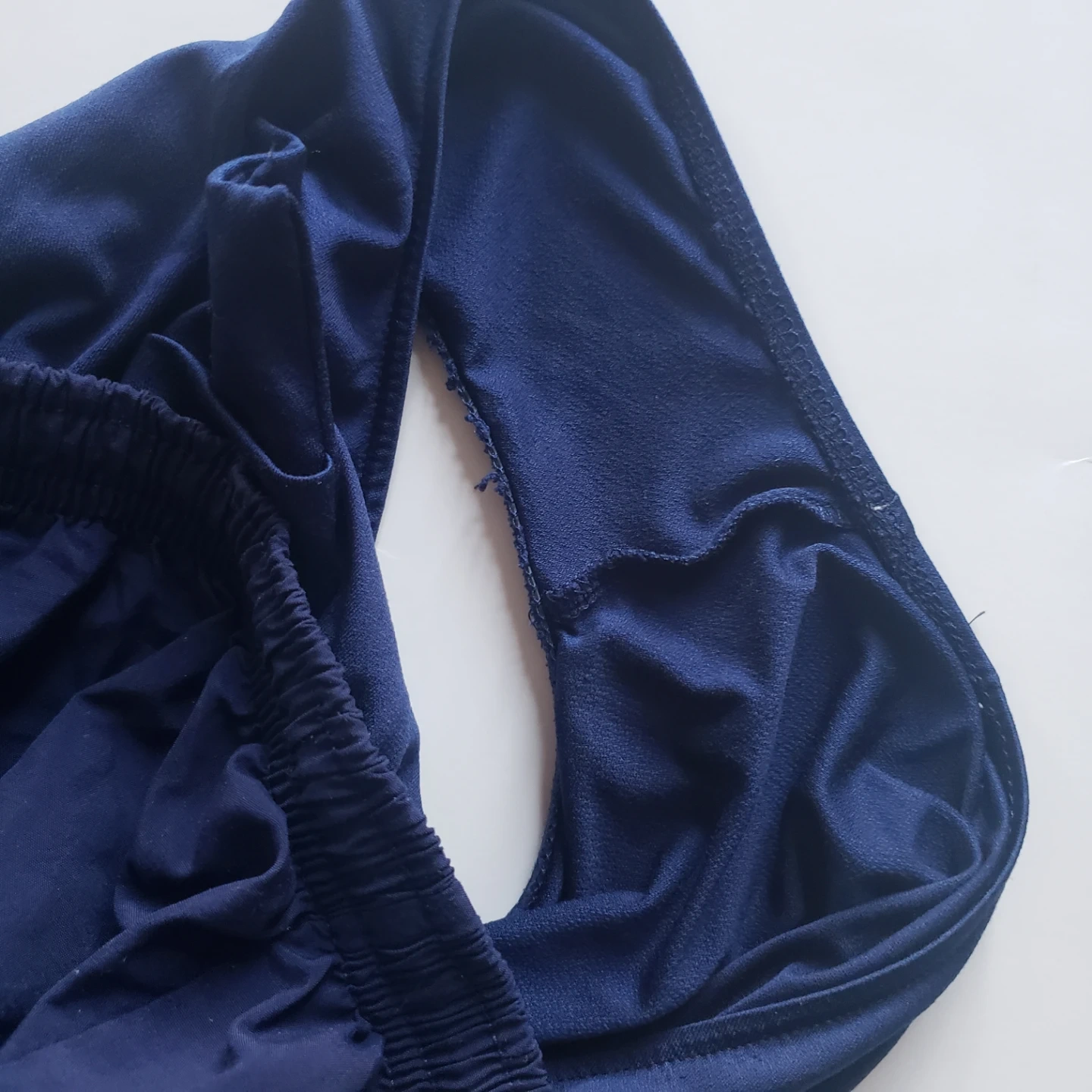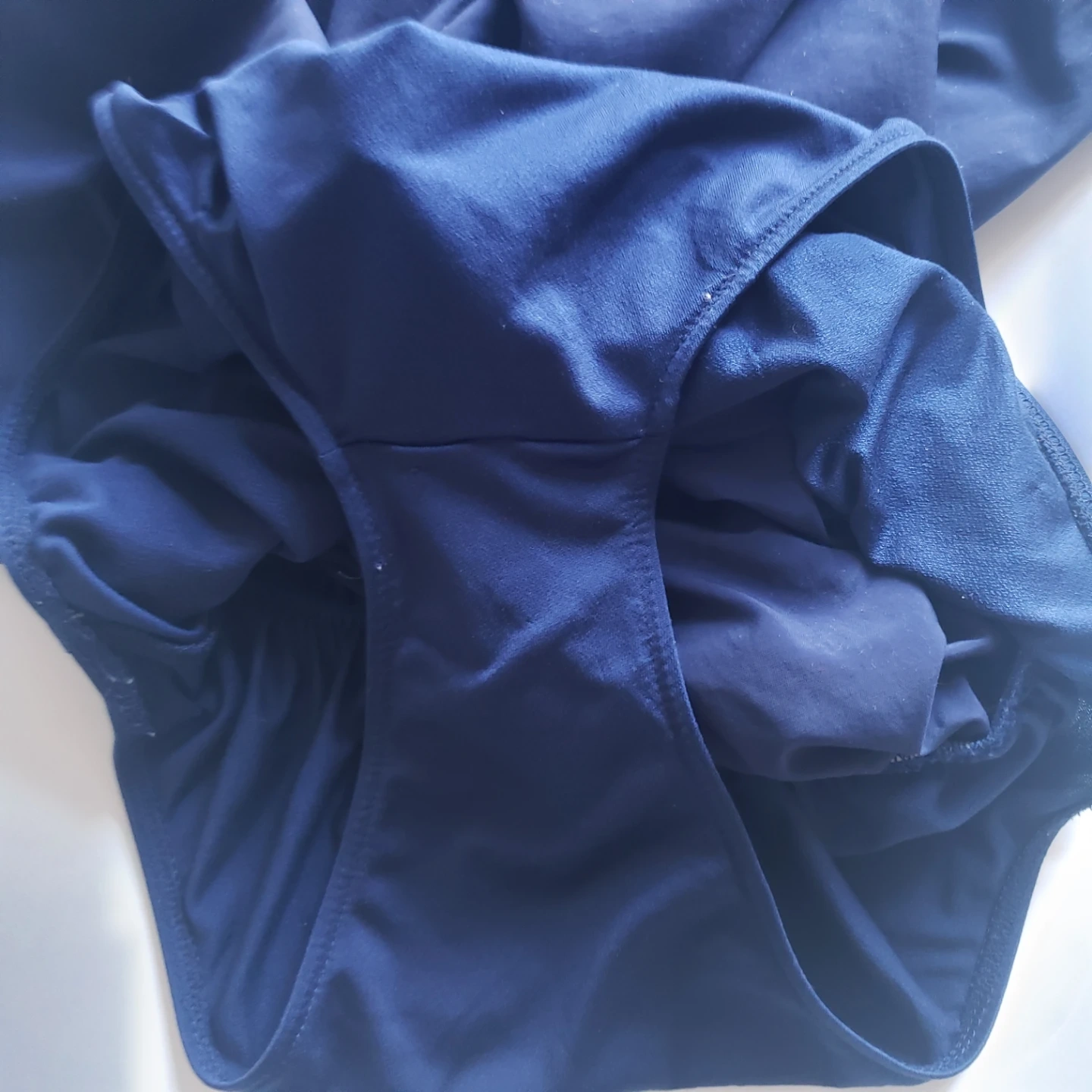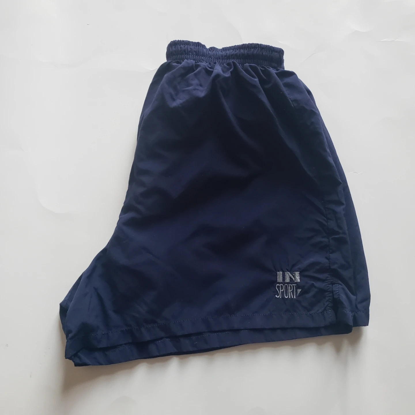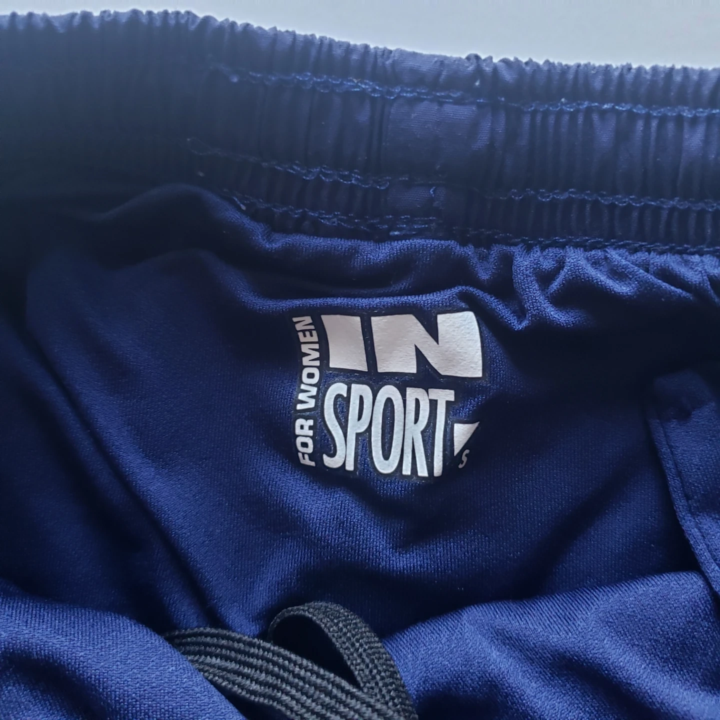 Women's navy blue running shorts. Elastic waistband. Small pocket on the inside.
