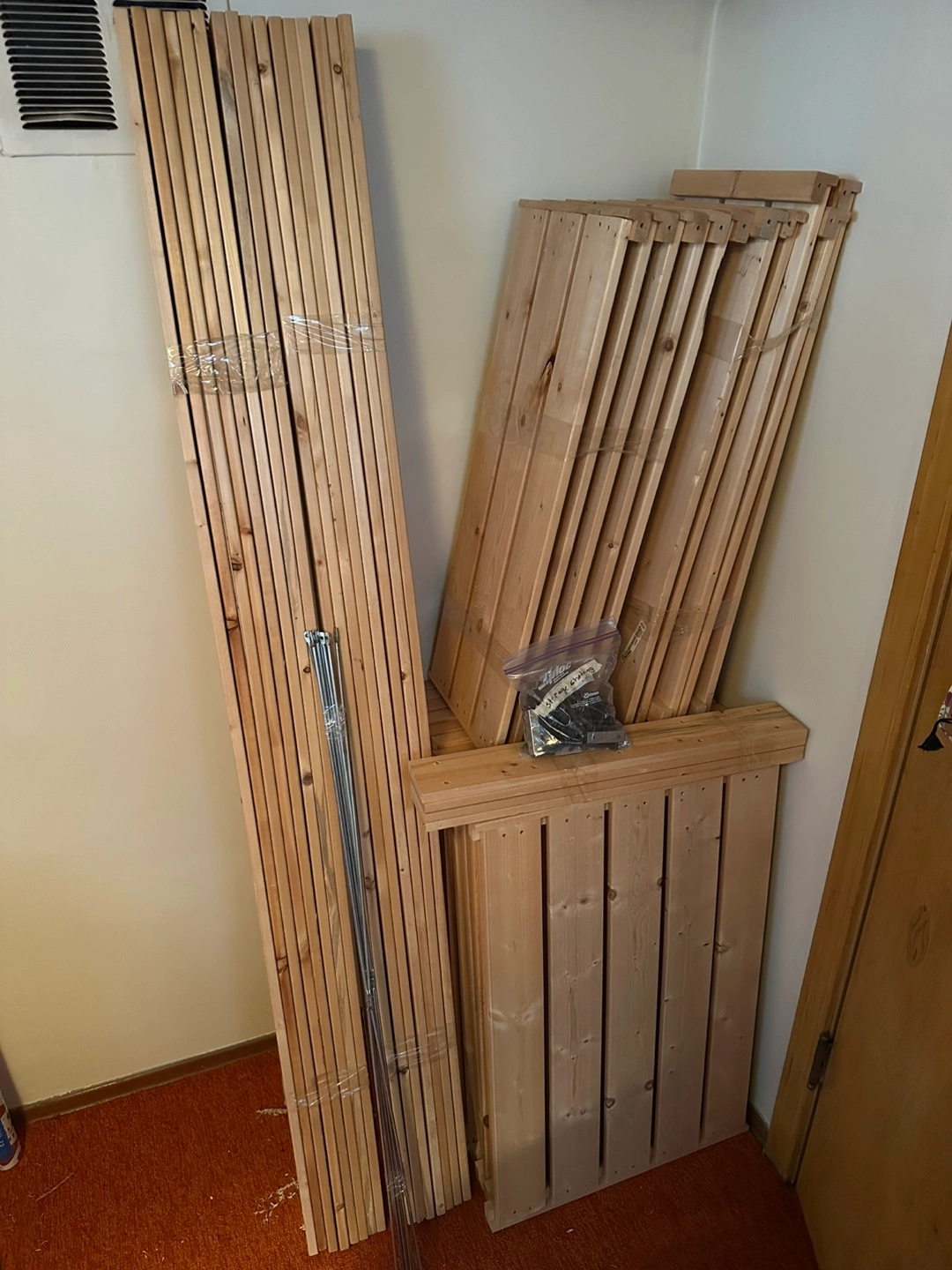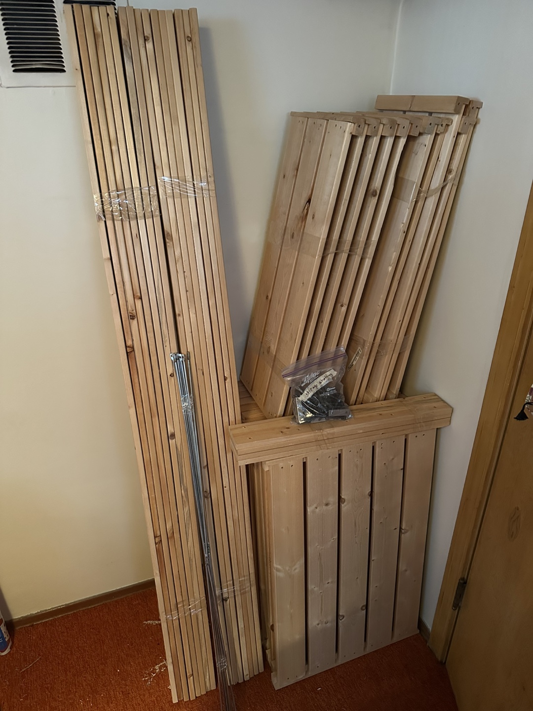 It is already taken apart for easy transport. Pictures are to show what it would look like if put together.