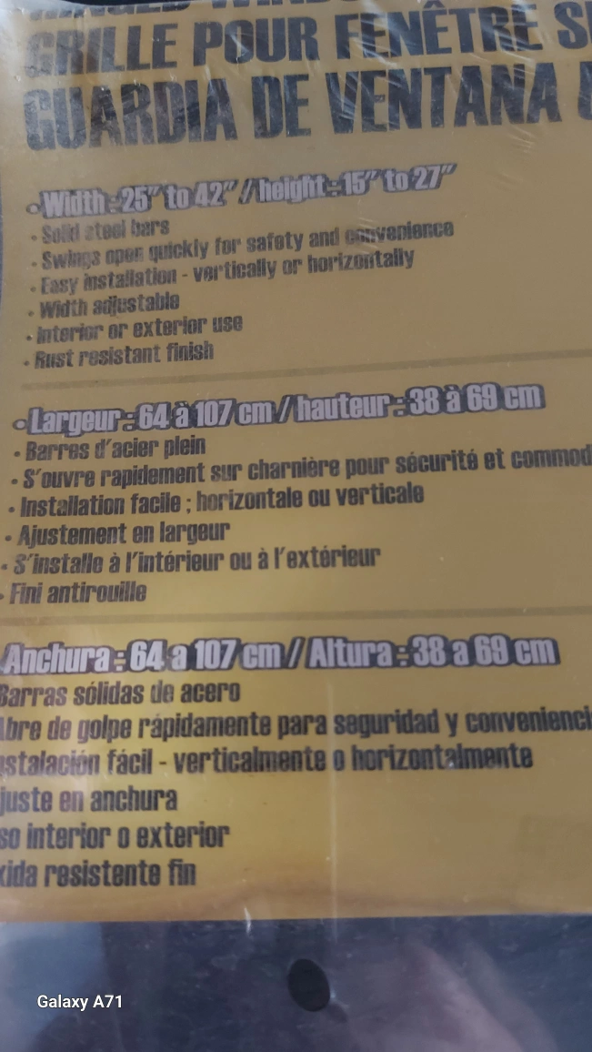 New in package. White metal window guard. Designed for hinged windows. Easy installation. Protects family and home. NO DELIVERY. $10 EACH .