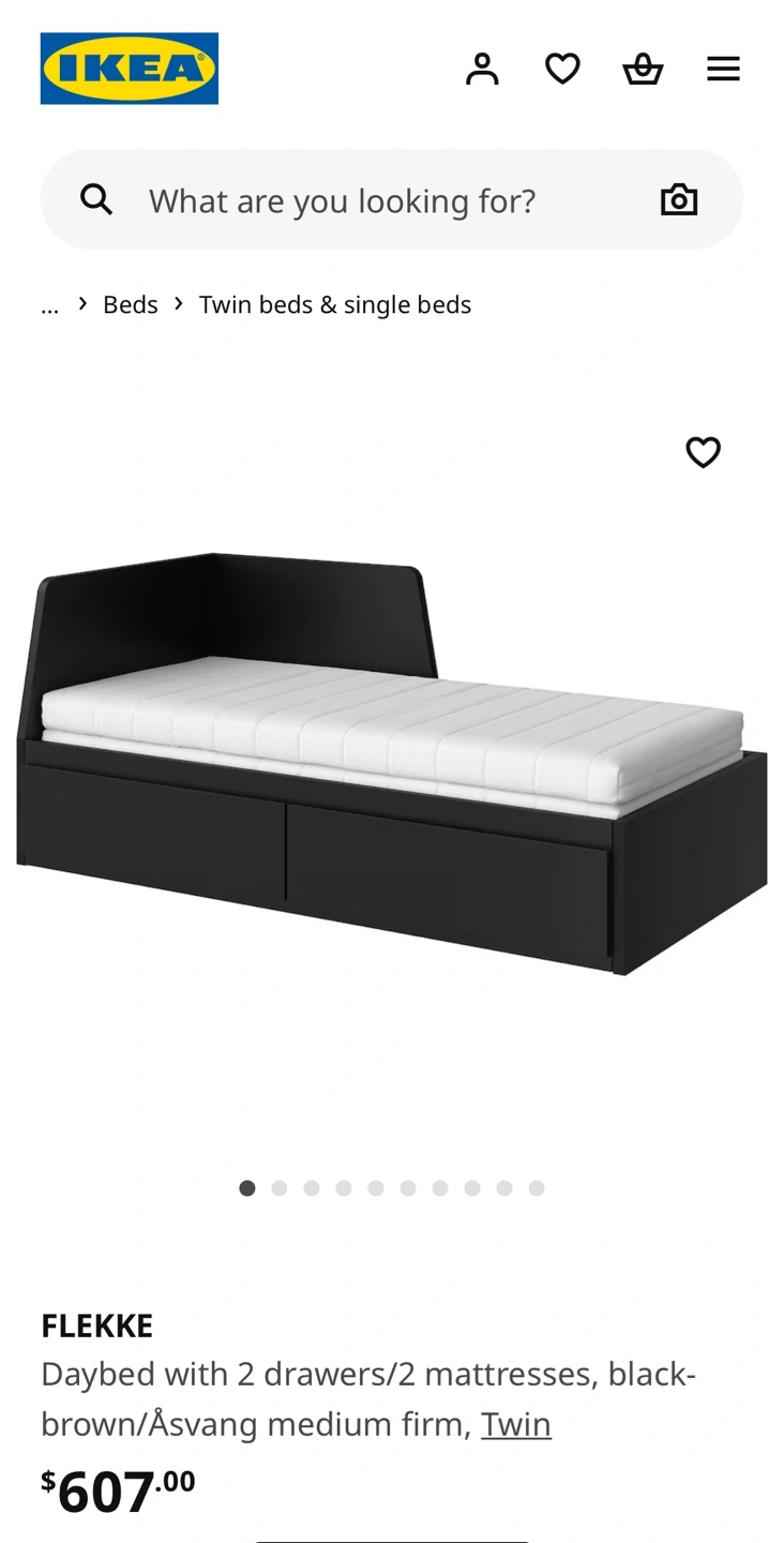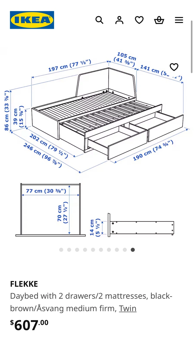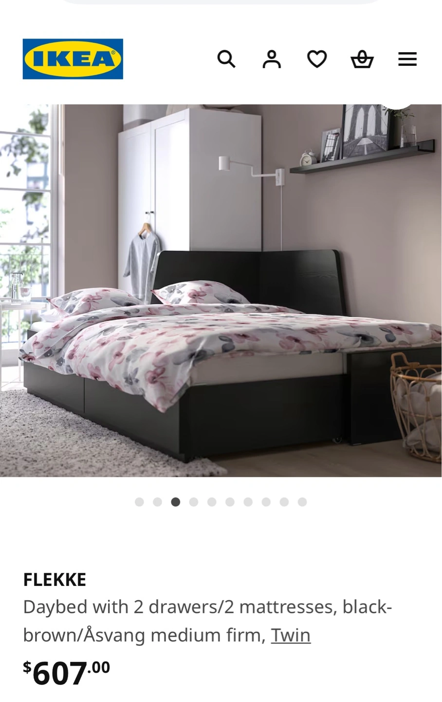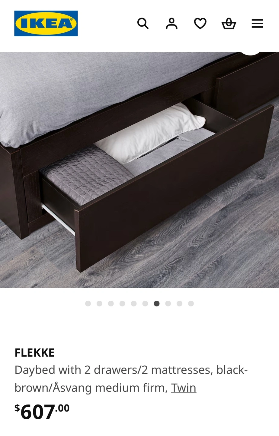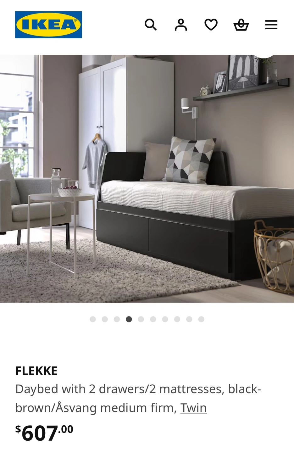 IKEA FLEKKE Daybed - Twin, Black-Brown, 2 Drawers, 2 Mattresses