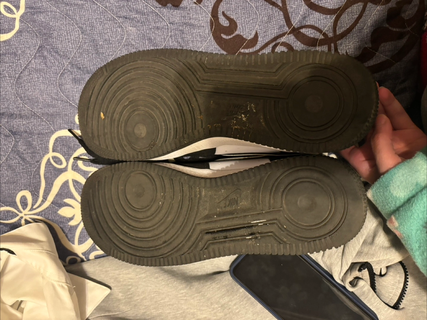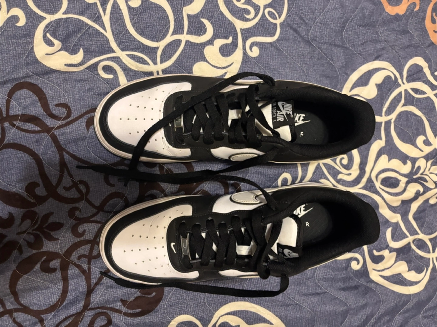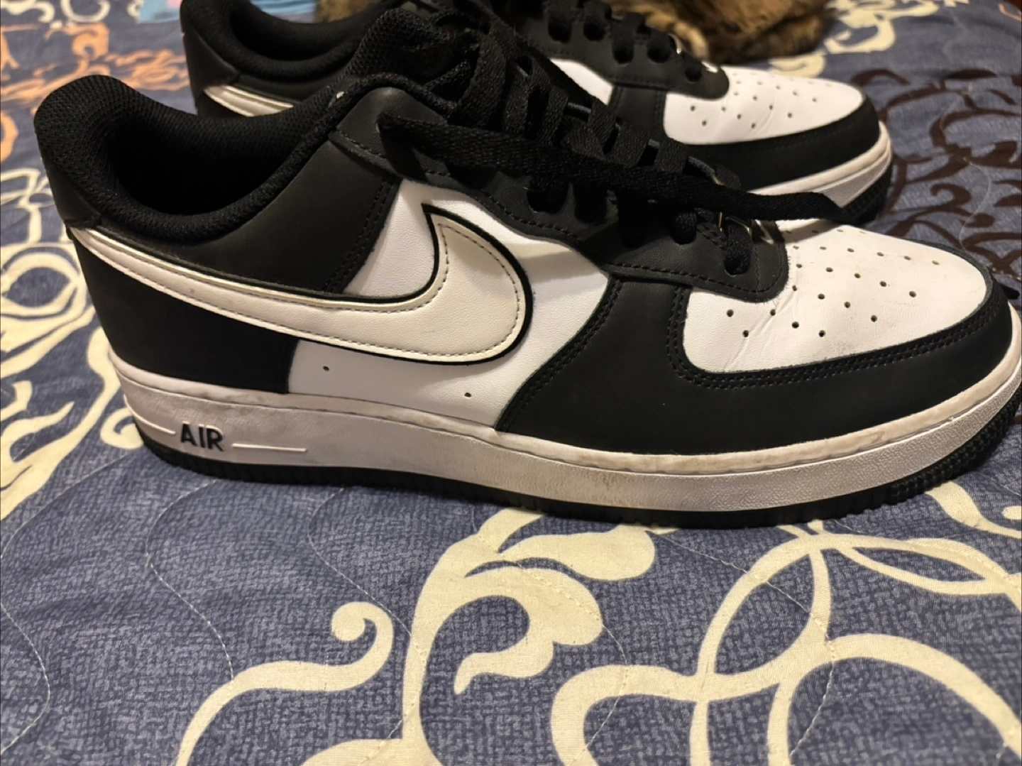 174Pair of Nike Air Force 1 '07 Low sneakers. Black and white colorway. Low-top design. Used condition. Size 10
