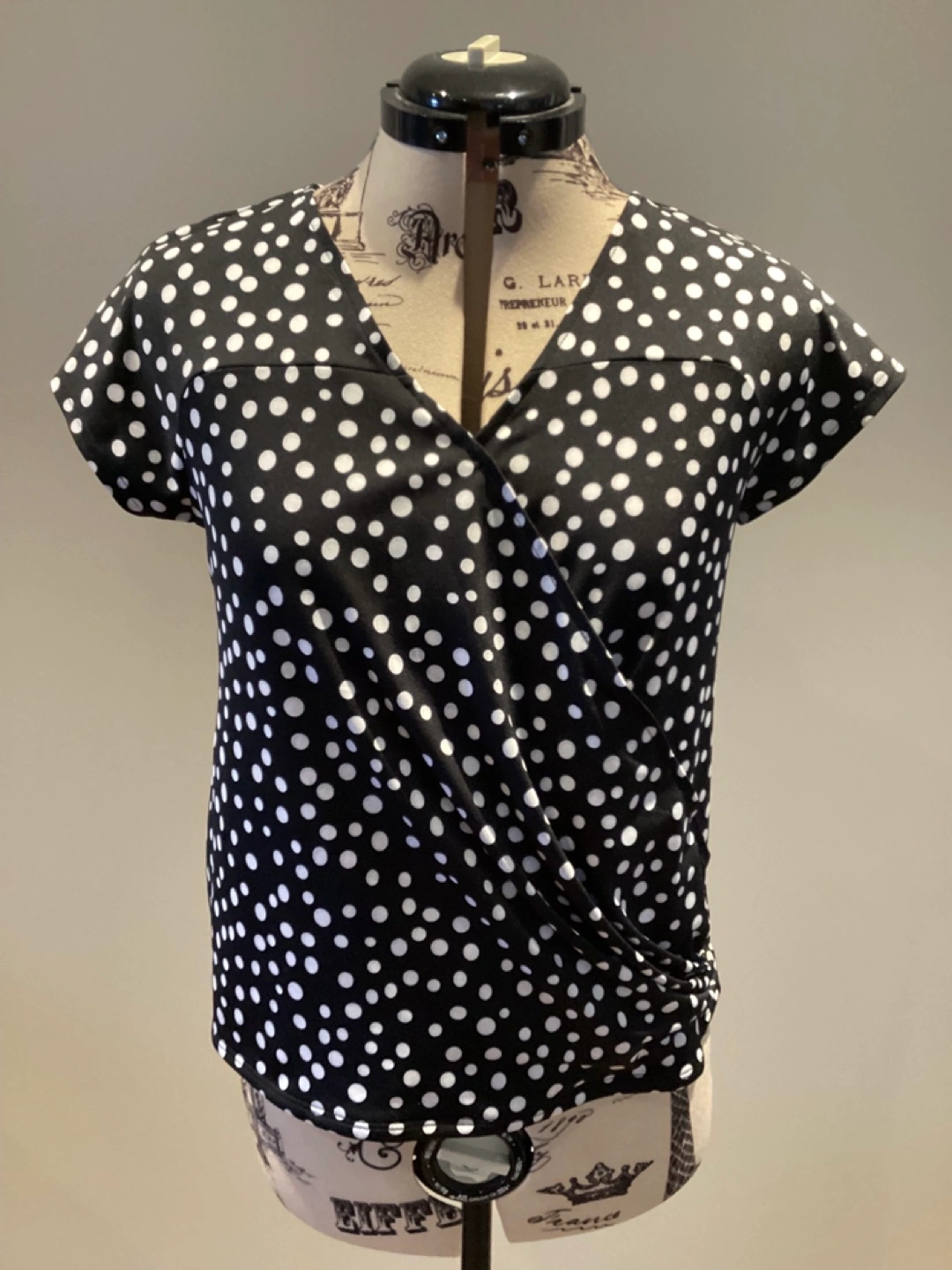 Jacob Polka Dot Wrap Top, great Spring/Summer top, I have sewn the wrap closed so no need to worry about it opening up, 96% Polyester 4% Elasthanne (basically Spandex)., Size Small, $10 or best offer.