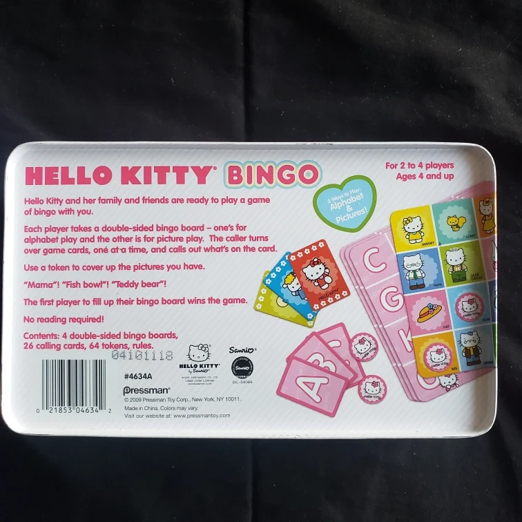 Two family-friendly card games. ONO is a family enjoyment card game. Hello Kitty Bingo features Hello Kitty characters and alphabet pictures.