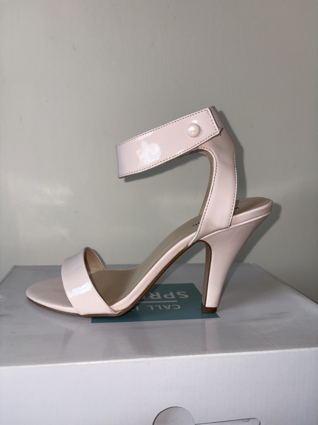 Blush pink heels. Ankle strap with cute button detail is Velcro! With box, gently worn but great condition.