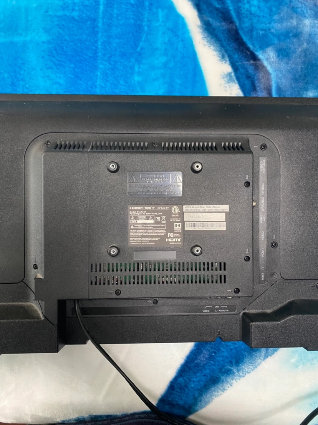 Element 24 inch LED TV. Roku smart TV. It's a 720p resolution screen. Includes HDMI and AV inputs. It includes a fire tv stick.