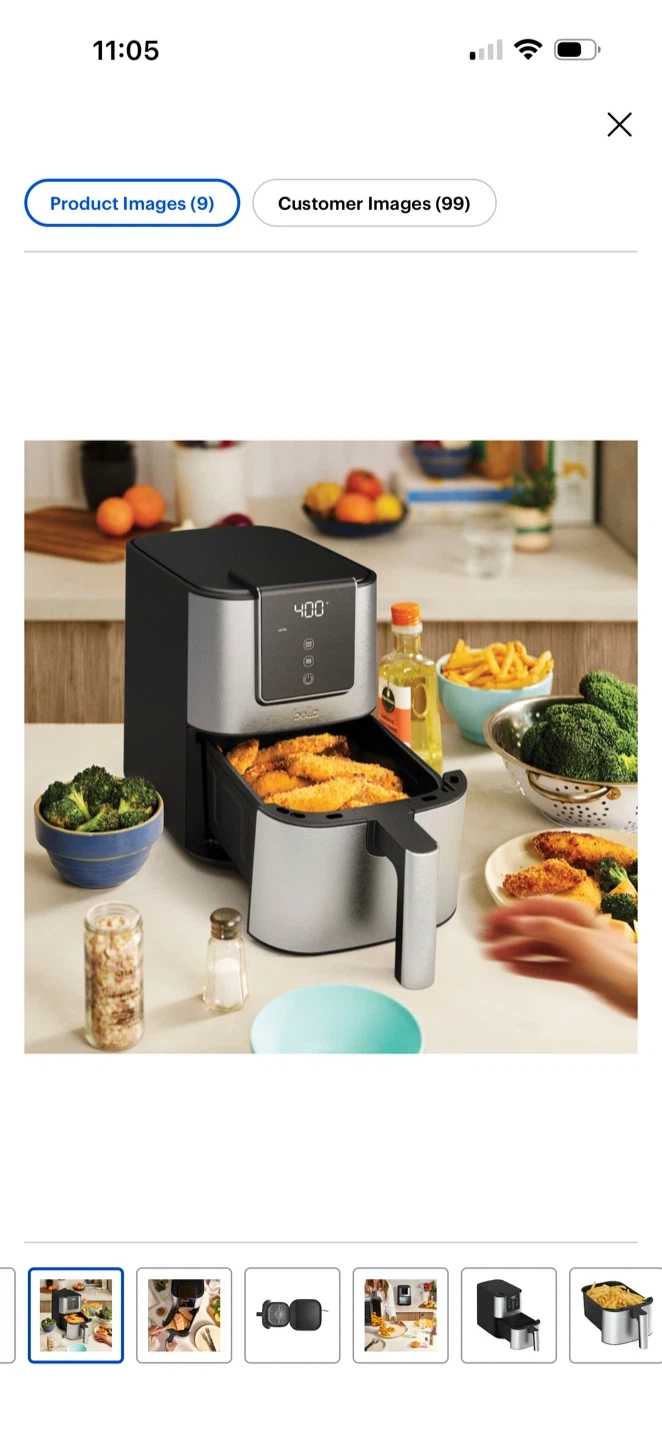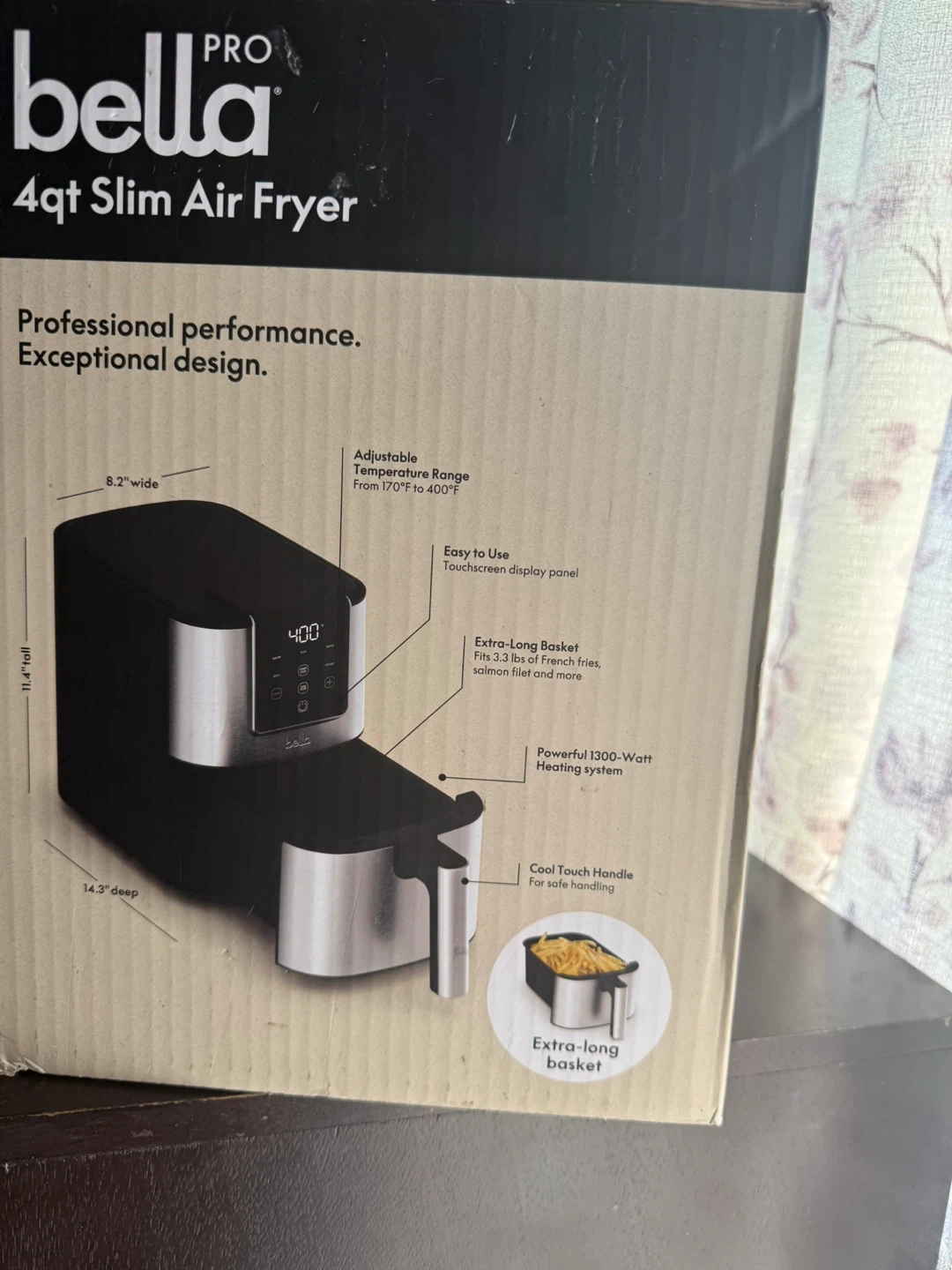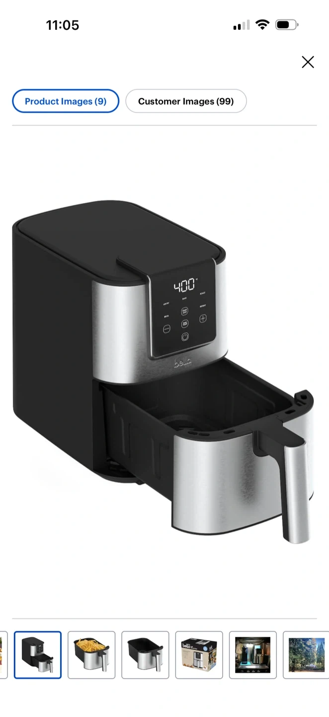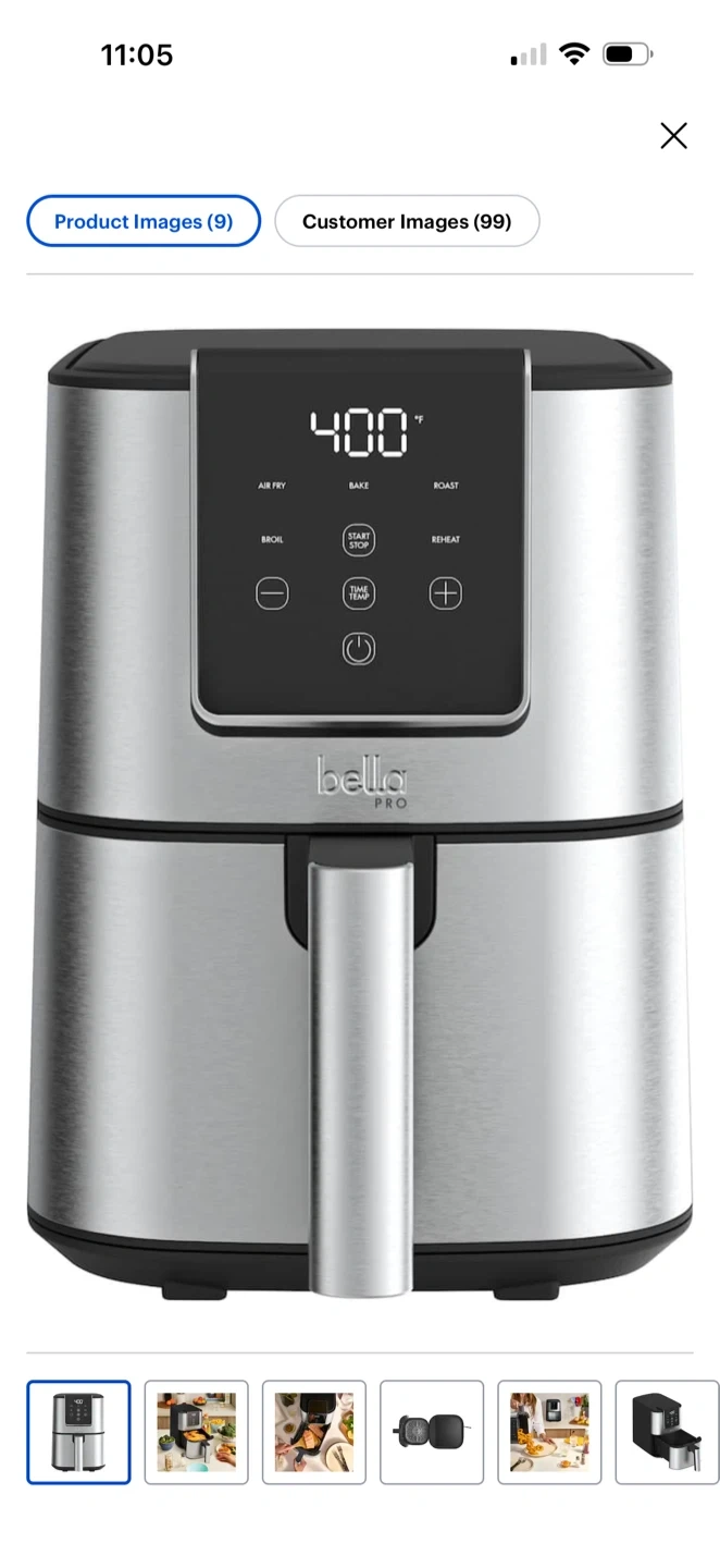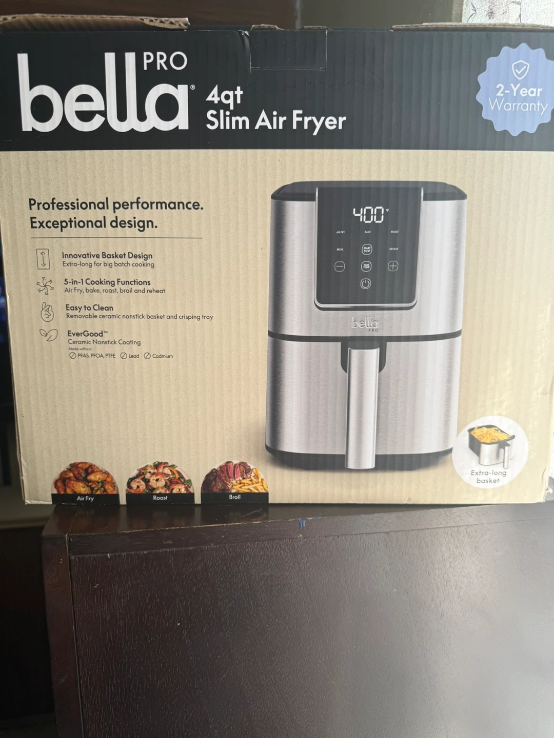 This Bella Pro 4qt Slim Air Fryer offers professional performance and exceptional design. It features a 5-in-1 cooking function, including air fry, roast, and broil. The extra-long ceramic nonstick basket is easy to clean and ideal for batch cooking.