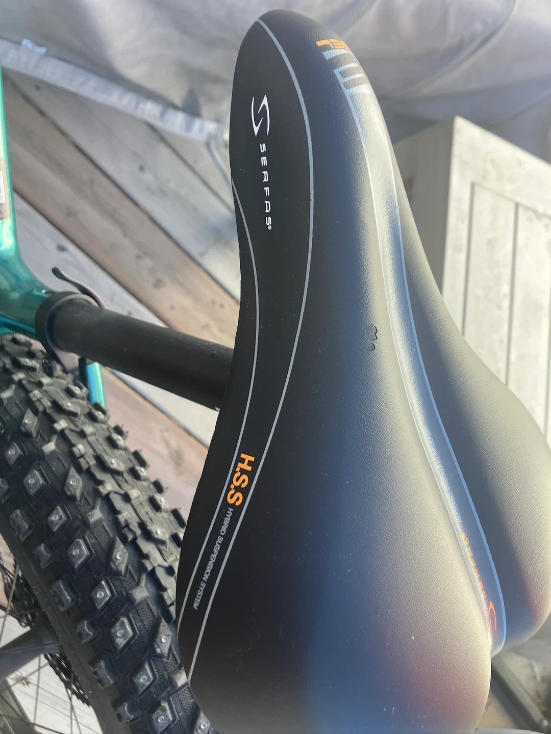This is a teal Norco fat bike. It has Studded Kenda Juggernaut 26x4.0 tires and a Serfas H.S.S. saddle. It's ready for all-terrain adventures! I bought this bike brand new in 2024 and only used it once and it’s been sitting in the garage and I need to downsize as I’m moving. I let the AI tool formulate the post and realized that it was posted as a Kona brand but the bike is a Norco. I’m open to reasonable offers. I’ve included a hand pump and a digital air pressure gauge.