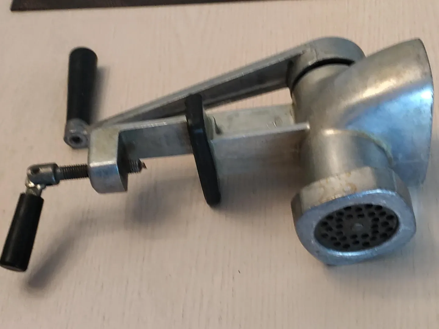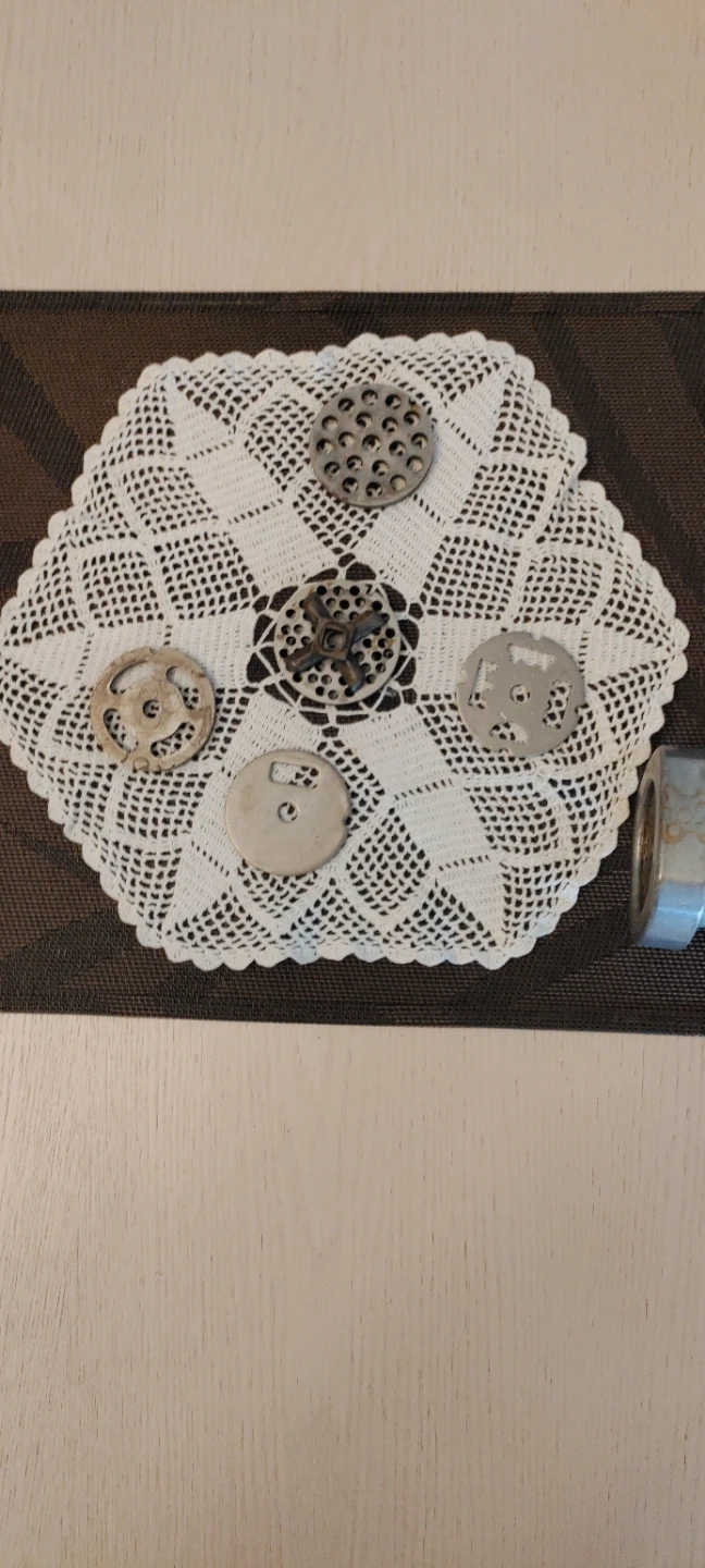 This is a vintage manual meat grinder, made in USSR in late '70. It comes with several different grinding plates for various textures. These grinders are great for making fresh sausages or kibbeh at home. It's a sturdy piece that's ready for your kitchen!