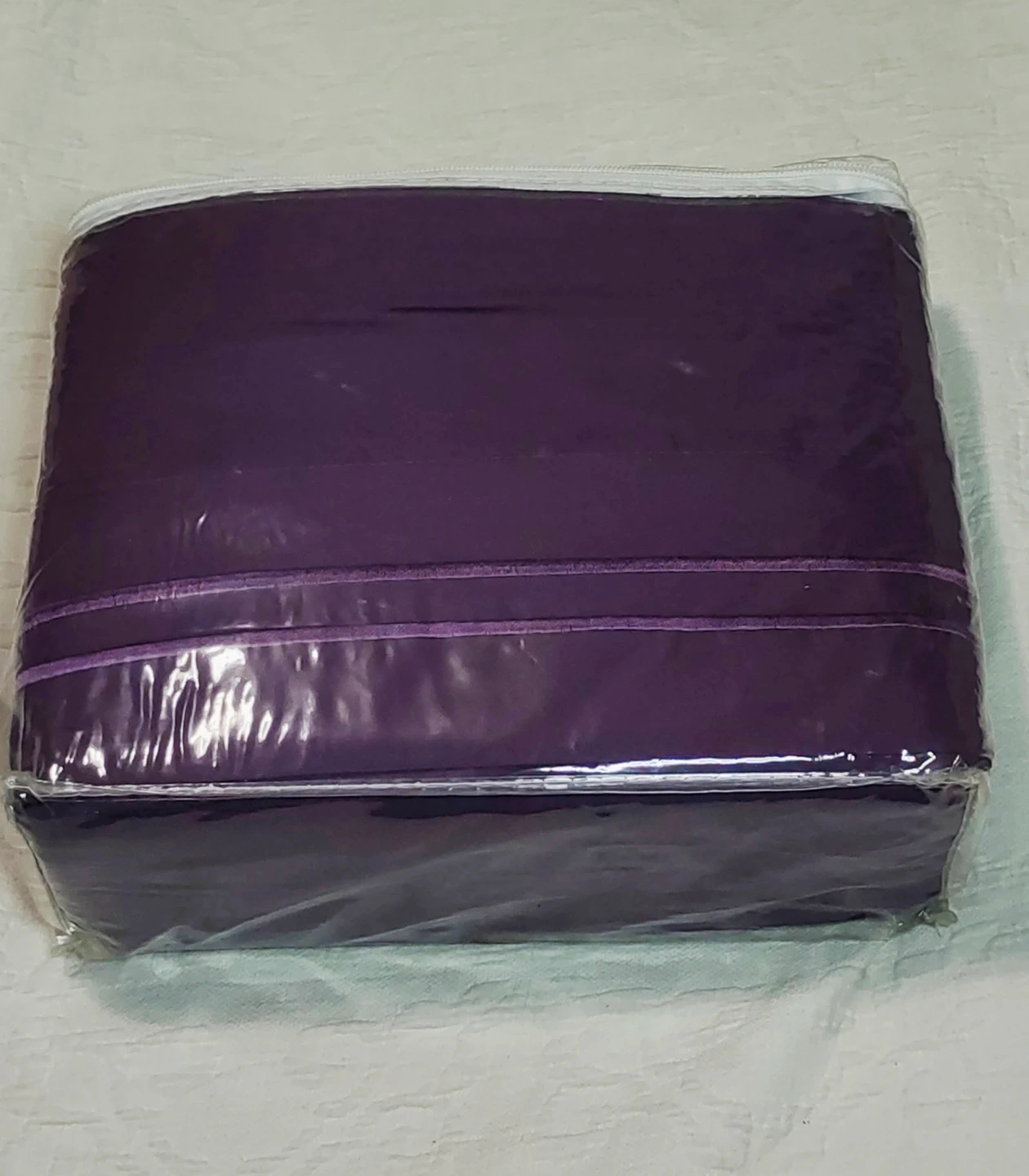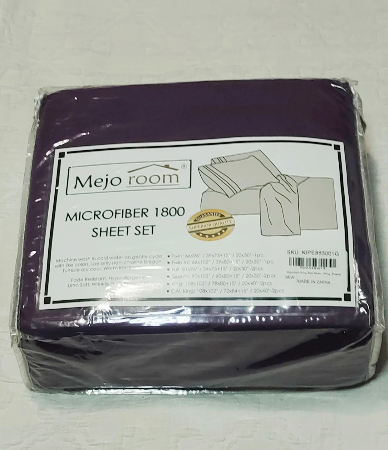 Mejo Room microfiber sheet set in a deep purple colour. It's a Queen size set with 1800 thread count. This set is fade resistant, hypoallergenic, and ultra soft. It's wrinkle-free and reversible.