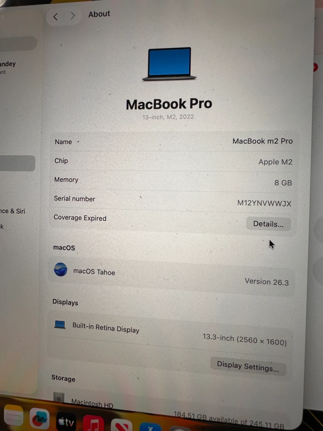 Apple MacBook Pro 13-inch, M2 chip, released in 2022. It comes with 8 GB of memory and a 13.3-inch Retina Display. Battery is at 100% maximum capacity. This laptop is great for everyday tasks and productivity!