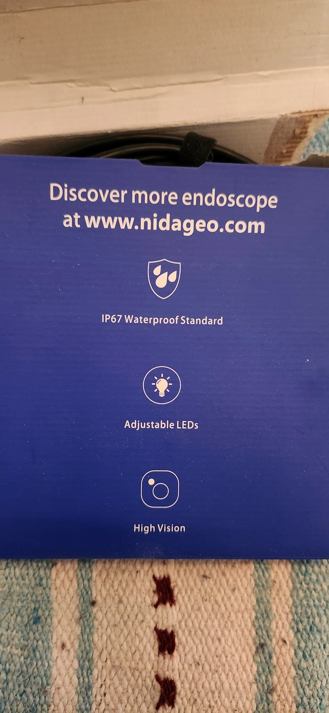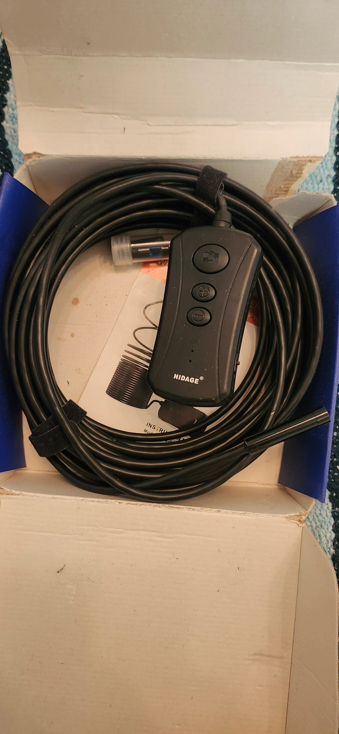 Selling a used Nidage wireless borescope! It's waterproof to the IP67 standard and features adjustable LEDs for high vision. Comes in the original beat up box.