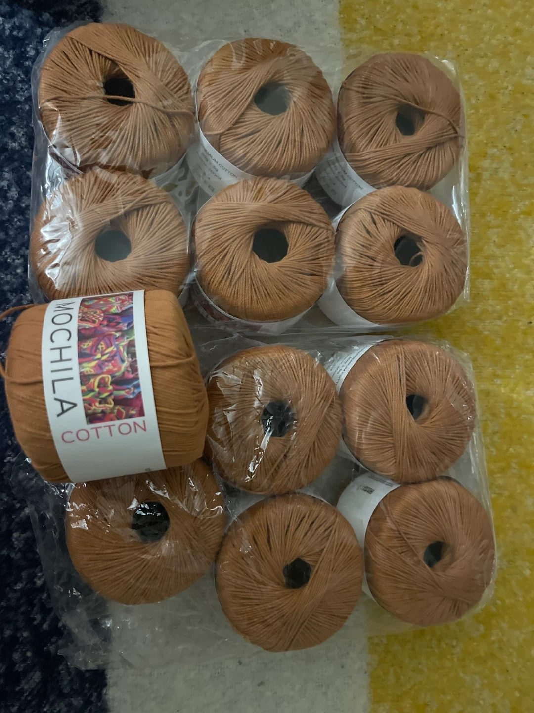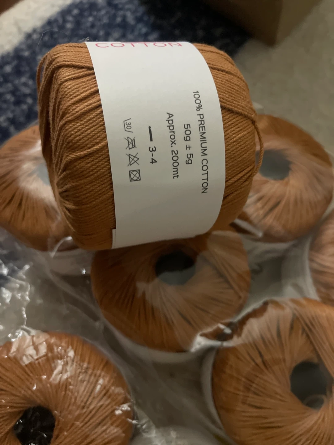 This is 100% premium cotton yarn in a lovely reddish-brown colour. It's approx. 200ml in length and 50g per skein. Perfect for knitting or crocheting projects!