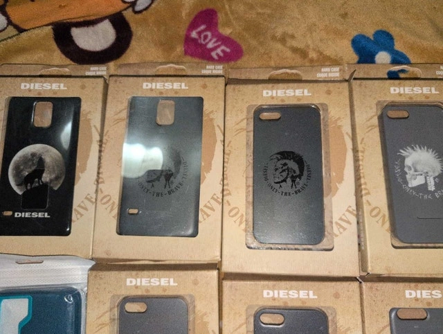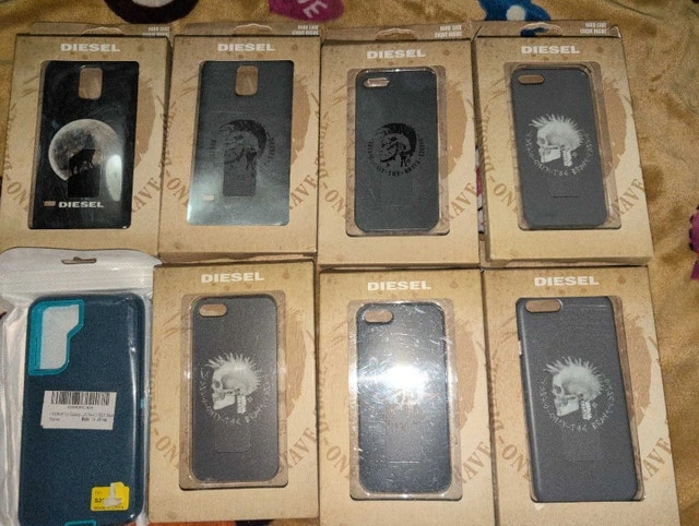 Offering a selection of new Diesel phone cases for various models, still in original packaging. Iconic Diesel designs for a stylish and edgy look. $5 each or $30 for all. Available if the ad is up.