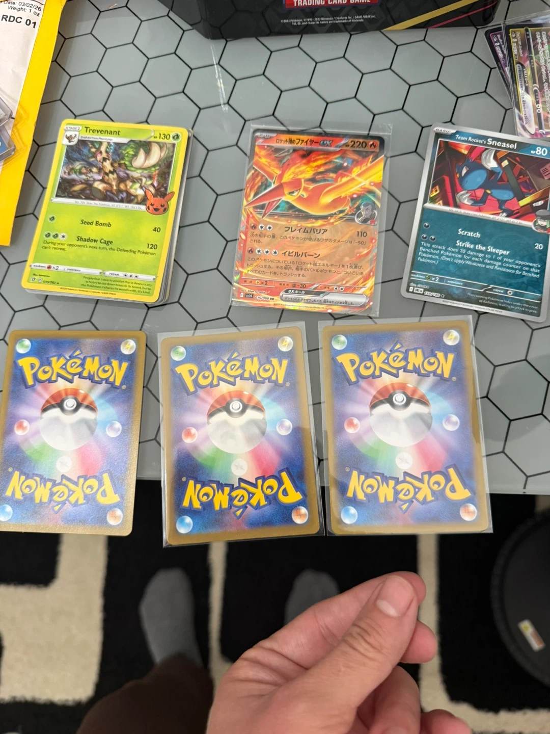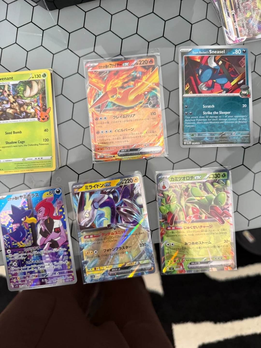 This lot includes several Pokémon EX trading cards, featuring various characters and artwork. Cards include Team Rocket's Sneasel, Moltres EX, and more. Great for any Pokémon collector!