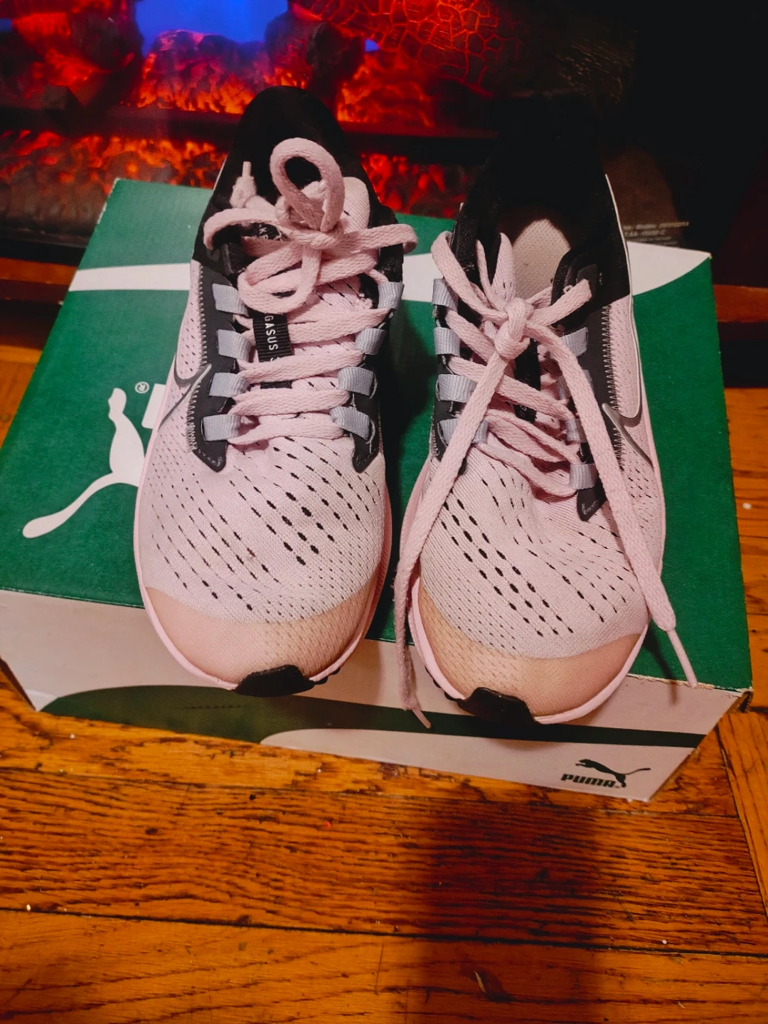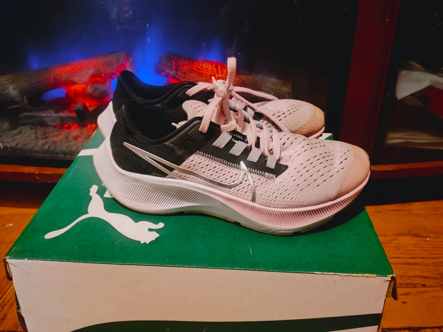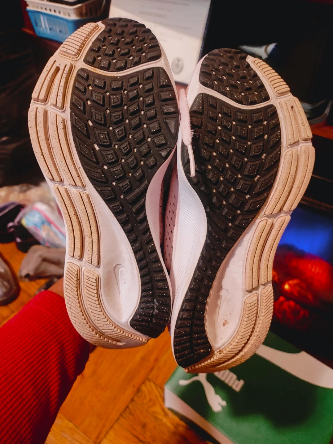 Nike Pegasus 38 running shoes in a light pink color. US Youth size 3Y. These are pre-owned but still have plenty of miles left in them!
