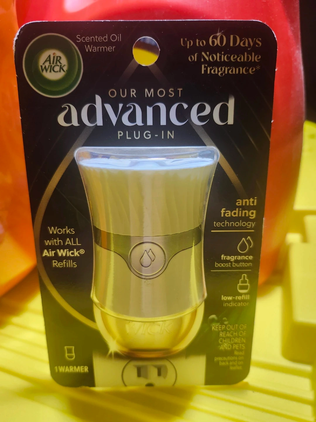 This Air Wick plug-in warmer is designed for scented oils and offers up to 60 days of noticeable fragrance. It features anti-fading technology and a fragrance boost button. The warmer works with all Air Wick refills and includes a low-refill indicator. It's a single warmer unit.