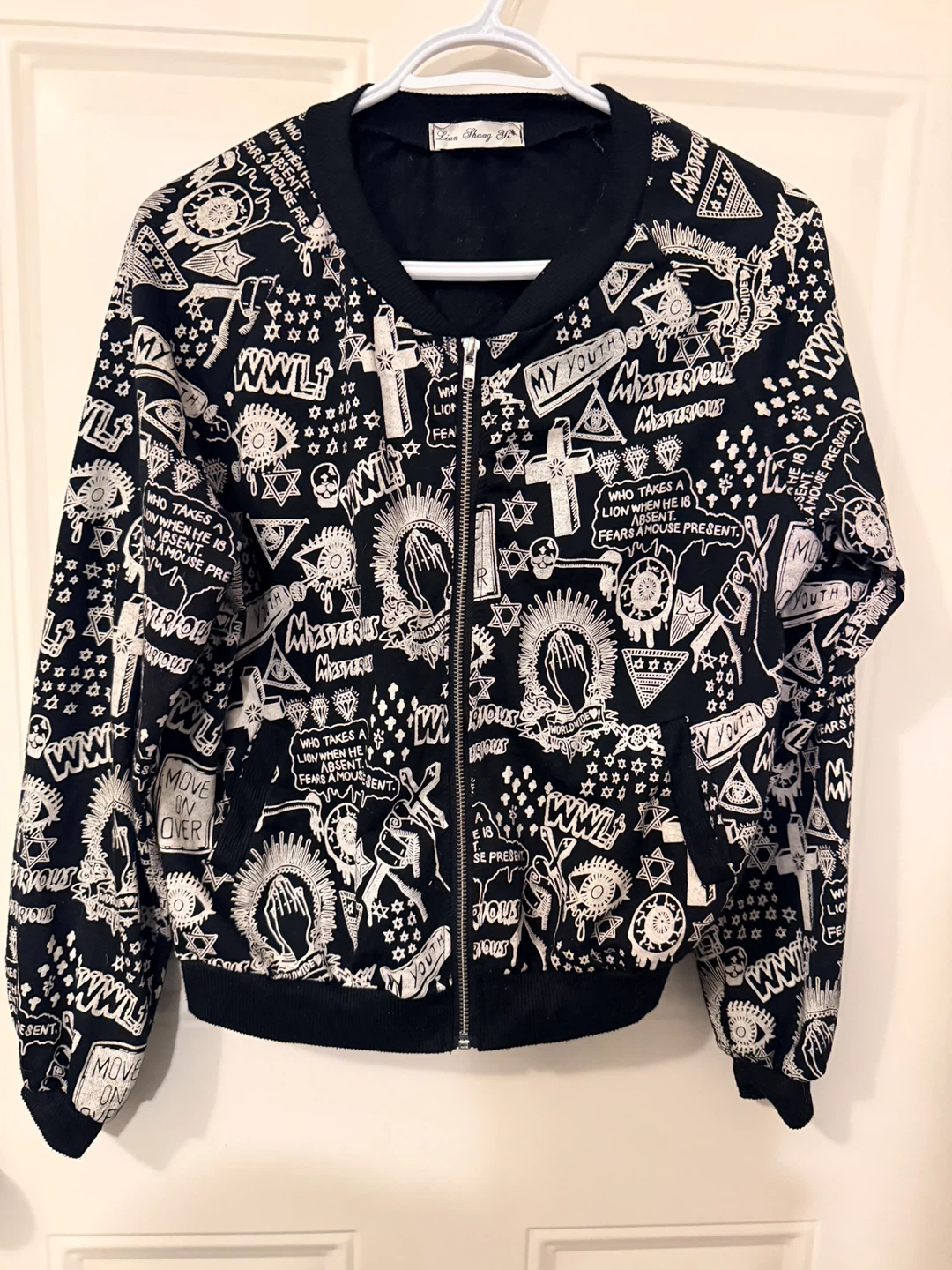 The print includes various symbols and text like "MY YOUTH" and "MYSTERIOUS."