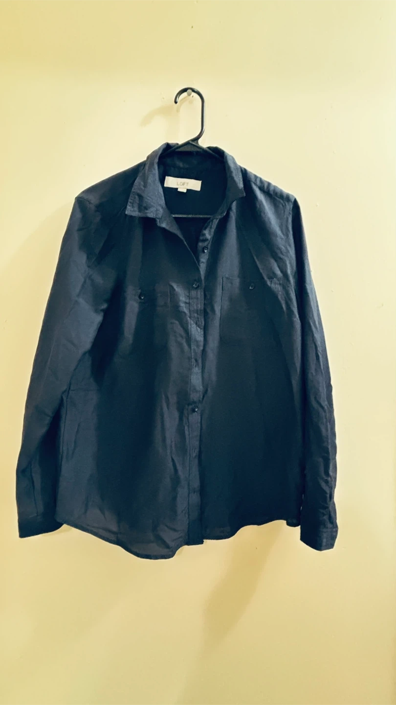 LOFT Navy Blue Button-Up Shirt
