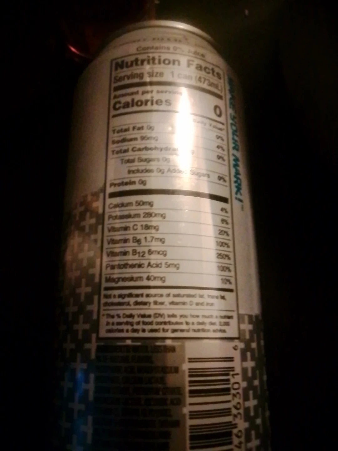 This sparkling water is a Pomegranate Acai Blueberry flavor. It contains 0 calories and 0g of added sugars. It's fortified with vitamins C, B6, and B12, plus potassium and magnesium.
