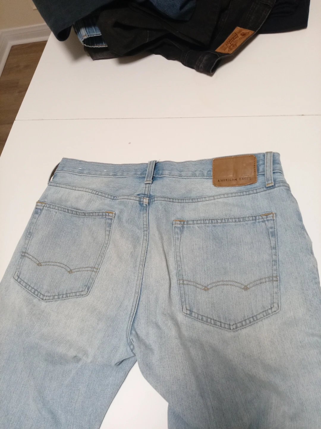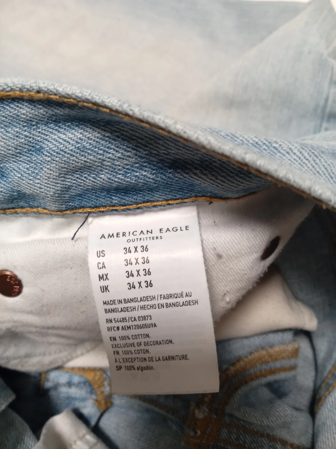 Classic light wash denim jeans from American Eagle Outfitters. Made with 100% cotton for comfort. Sized at 34x36.