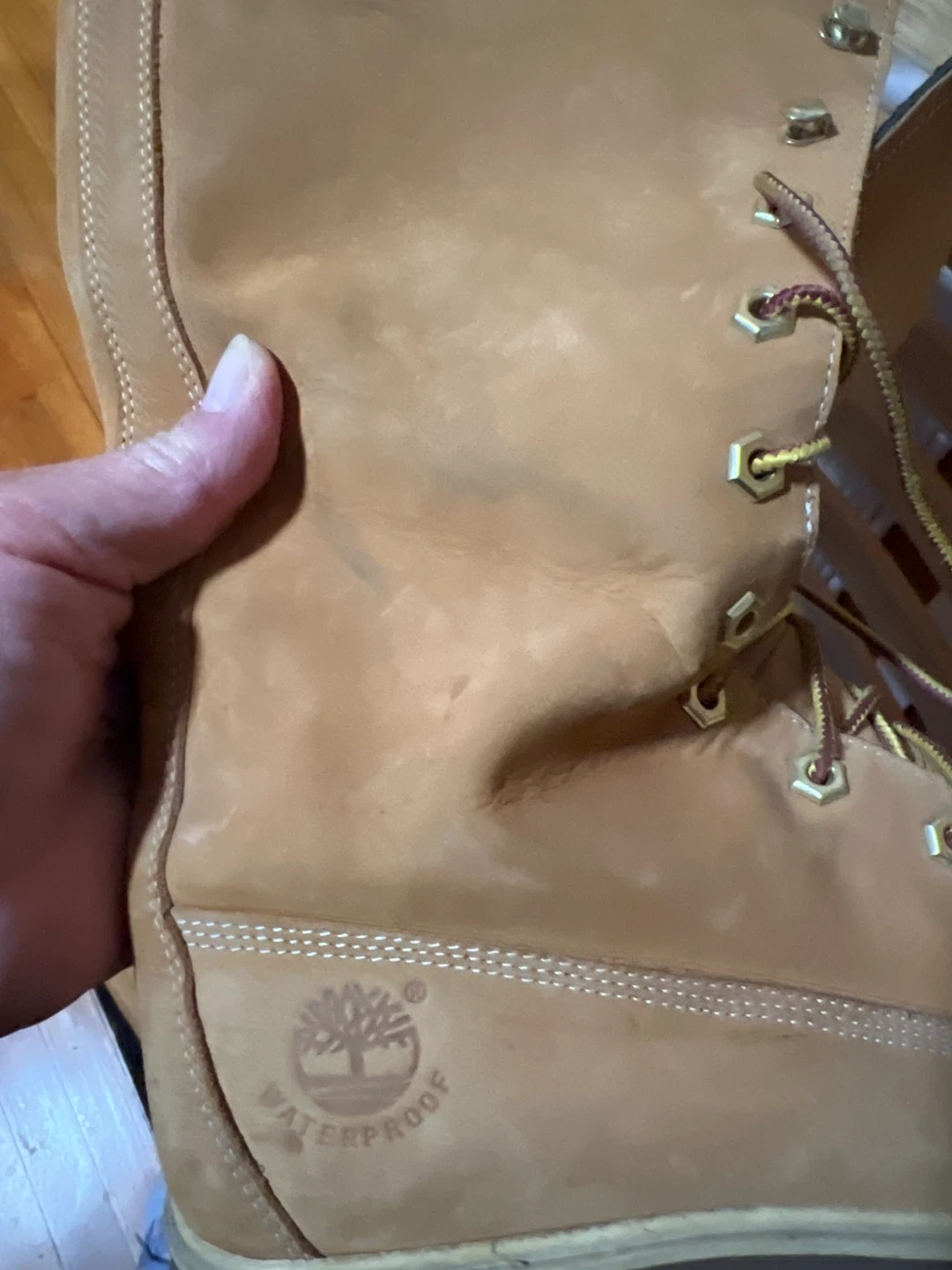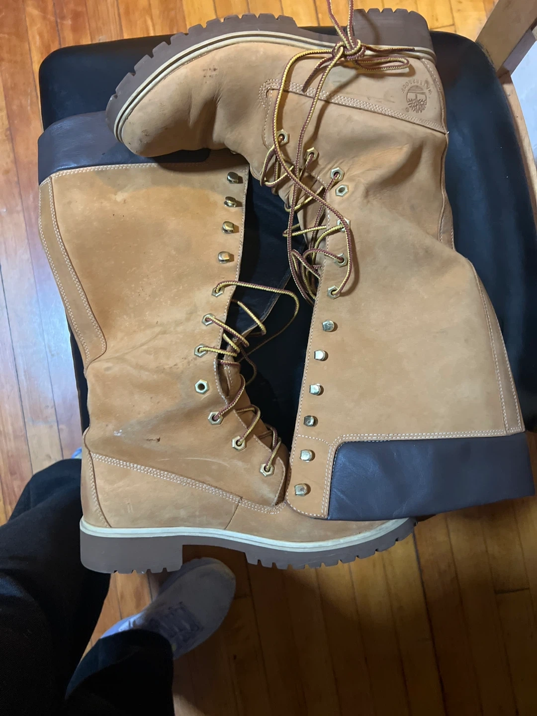 These Timberland boots offer waterproof protection and a stylish tall lace-up design. Genuine leather and suede construction. Perfect for cold weather adventures!