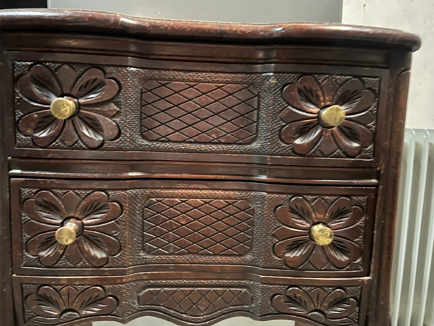 Antique Carved Wooden Side Table with Drawers